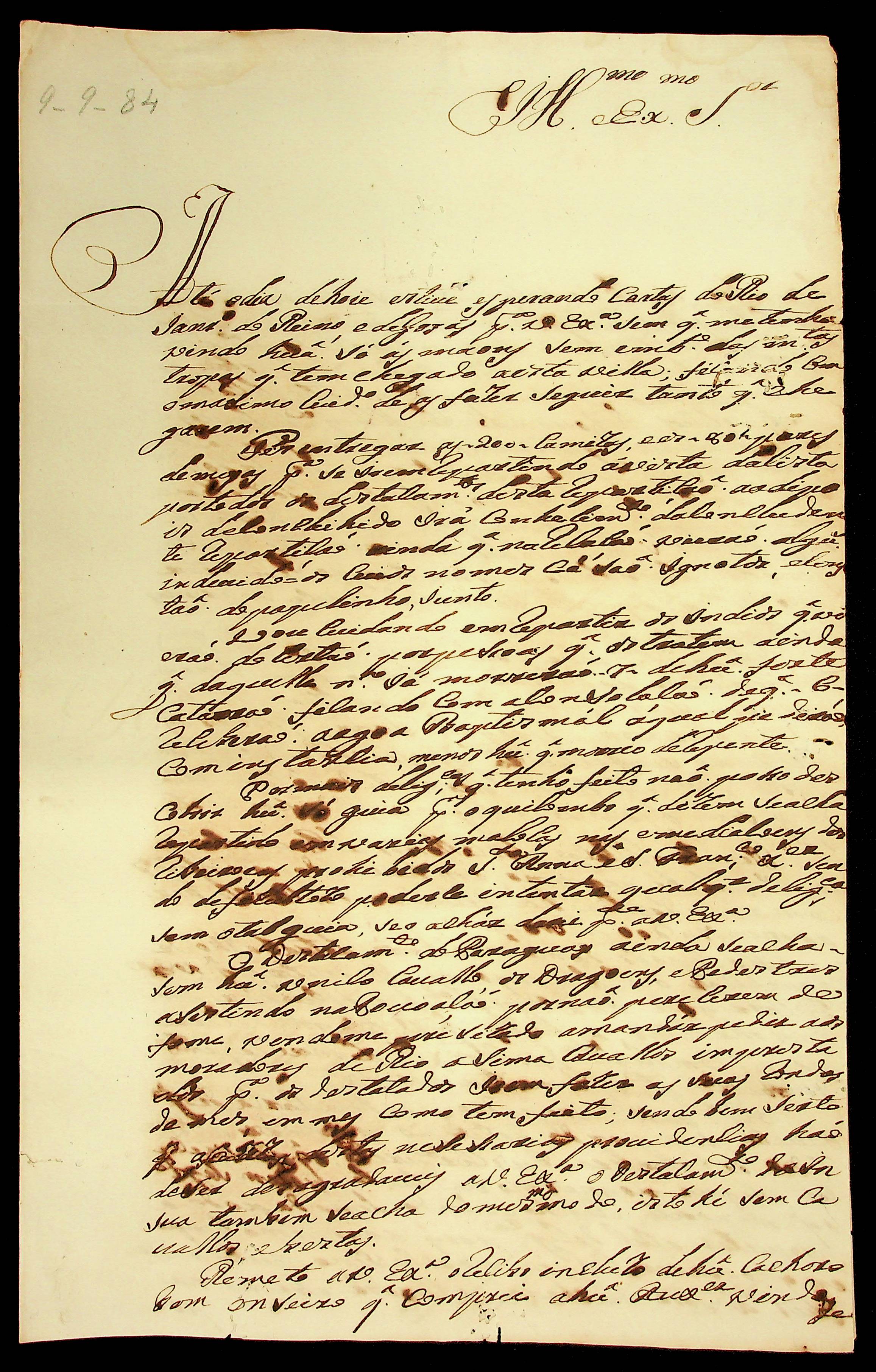 CARTA do [Mestre de Campo] Antônio José Pinto de Figueiredo ao [Governador e Capitão-General da Capitania de Mato Grosso] Luiz de Albuquerque de Mello Pereira e Cáceres.