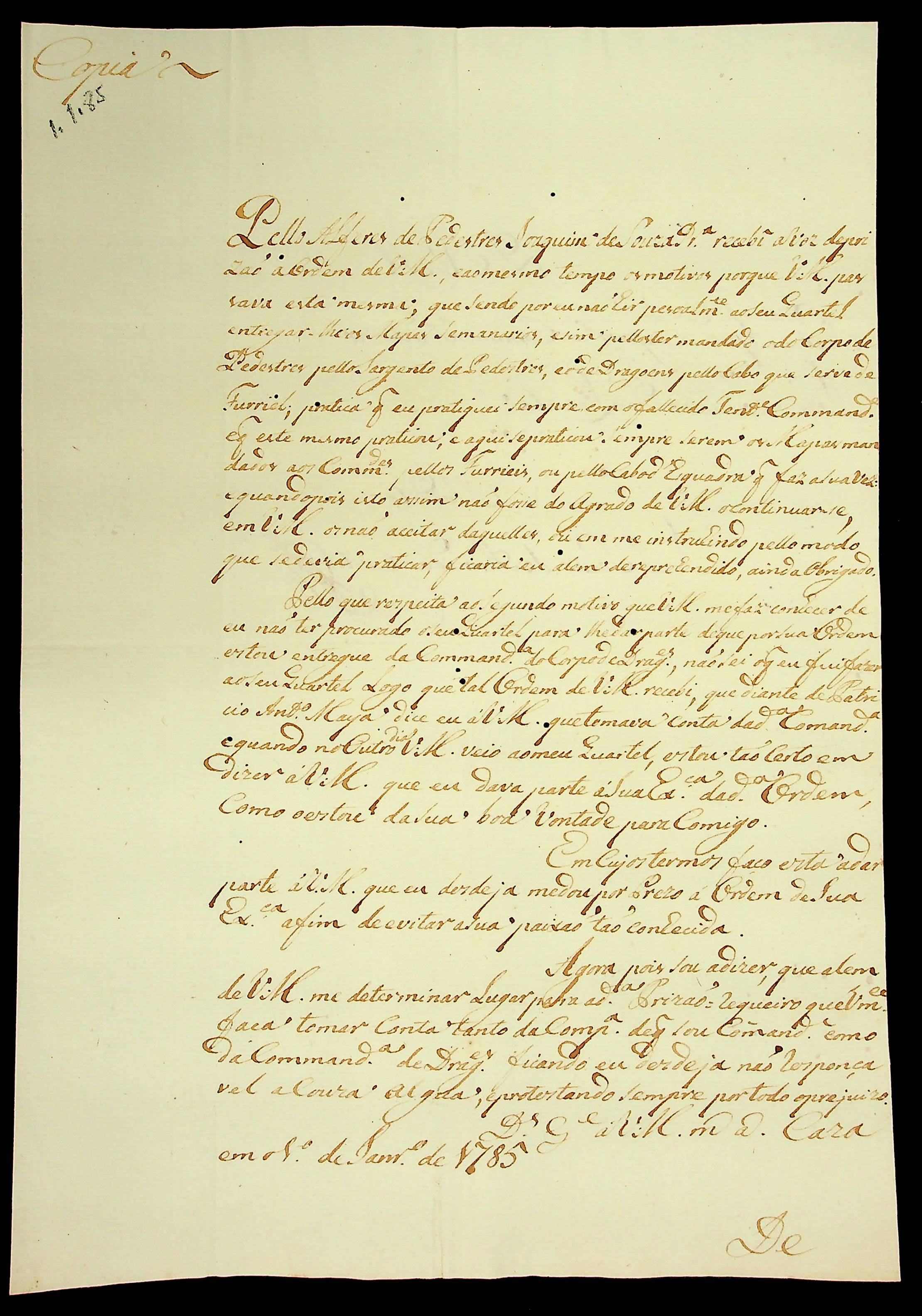 CARTA de João Soeiro de Almeida e Castro ao Comandante Interino José Pinheiro de Lacerda.