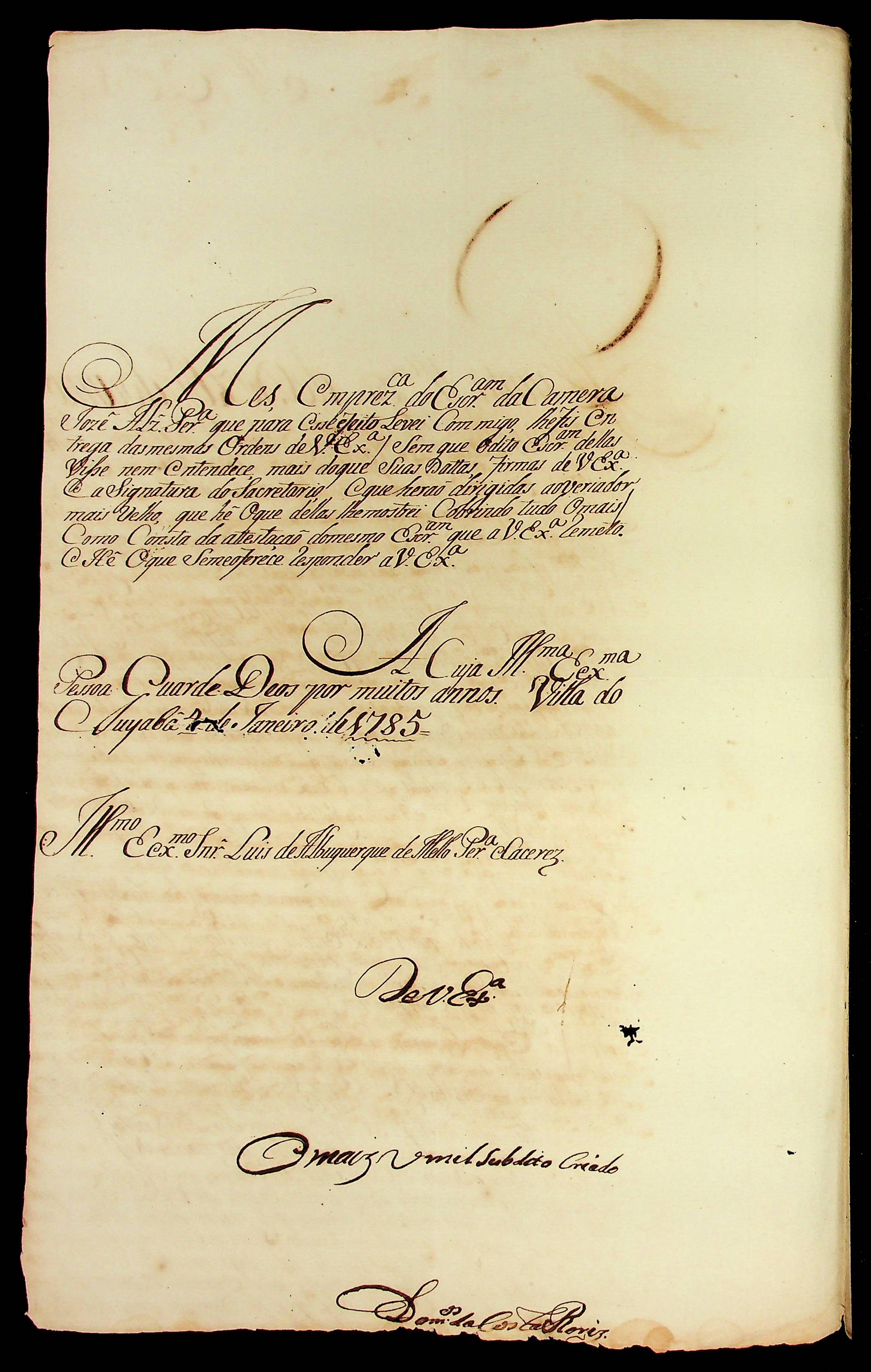CARTA do [Capitão da Ordenança] Domingos da Costa Rodrigues ao [Governador e Capitão-General de Mato Grosso] Luiz de Albuquerque de Mello Pereira e Cáceres.
