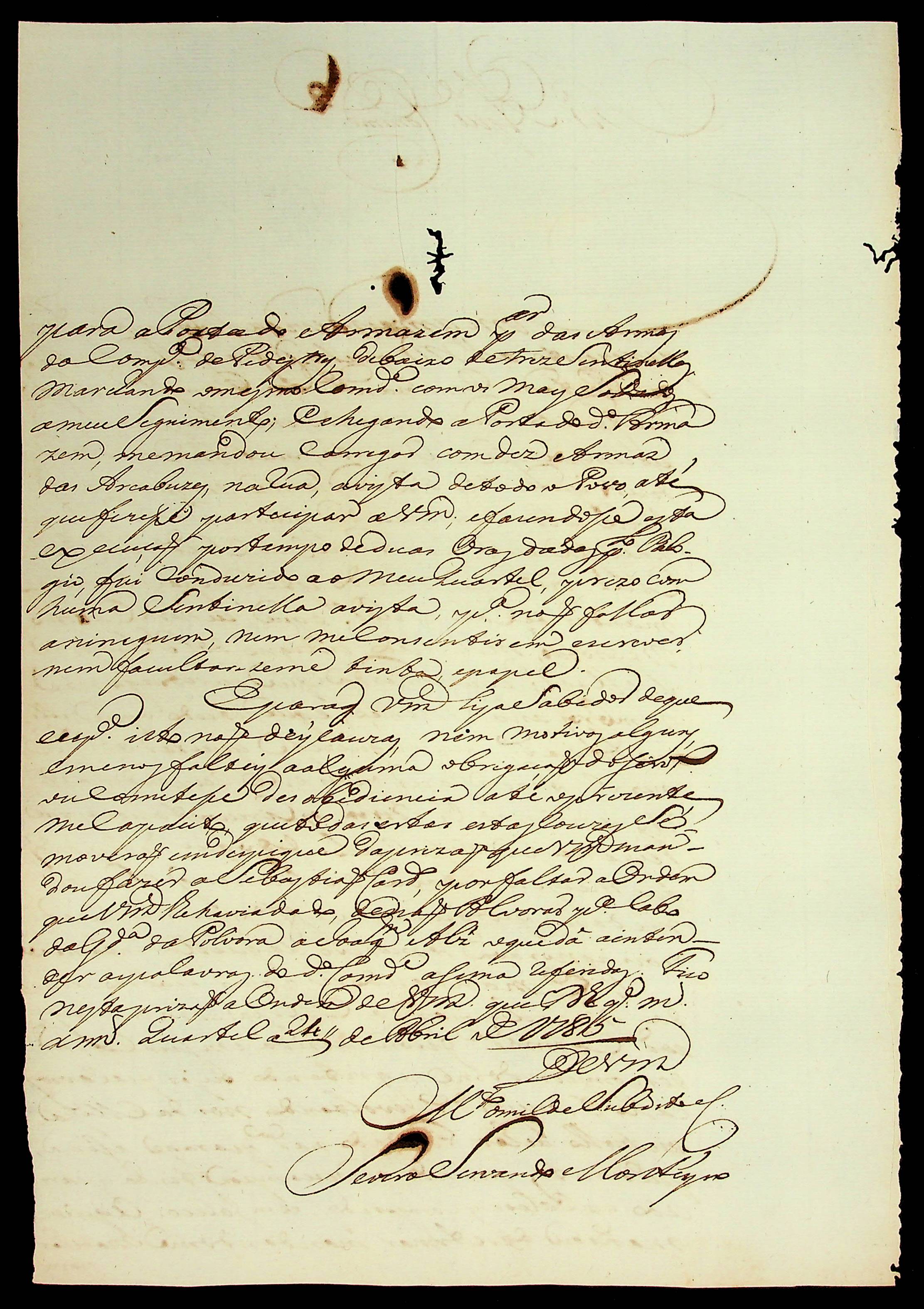 CARTA de Severo Servando Monteiro ao Senhor Ajudante e Comandante do Forte.