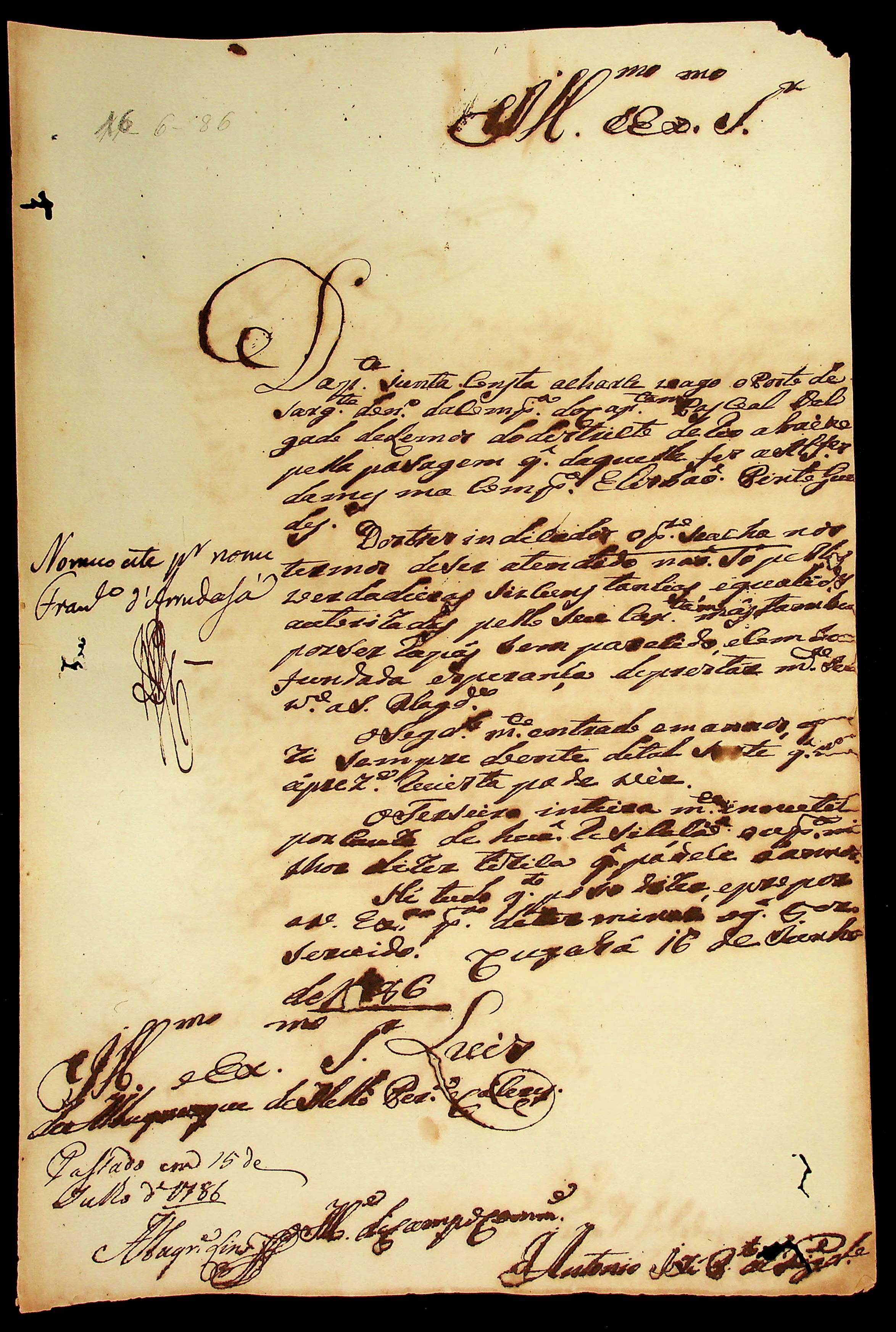 CARTA do Mestre de Campo Antônio José Pinto de Figueiredo ao Governador e Capitão-General da Capitania de Mato Grosso Luiz de Albuquerque de Mello Pereira e Cáceres.