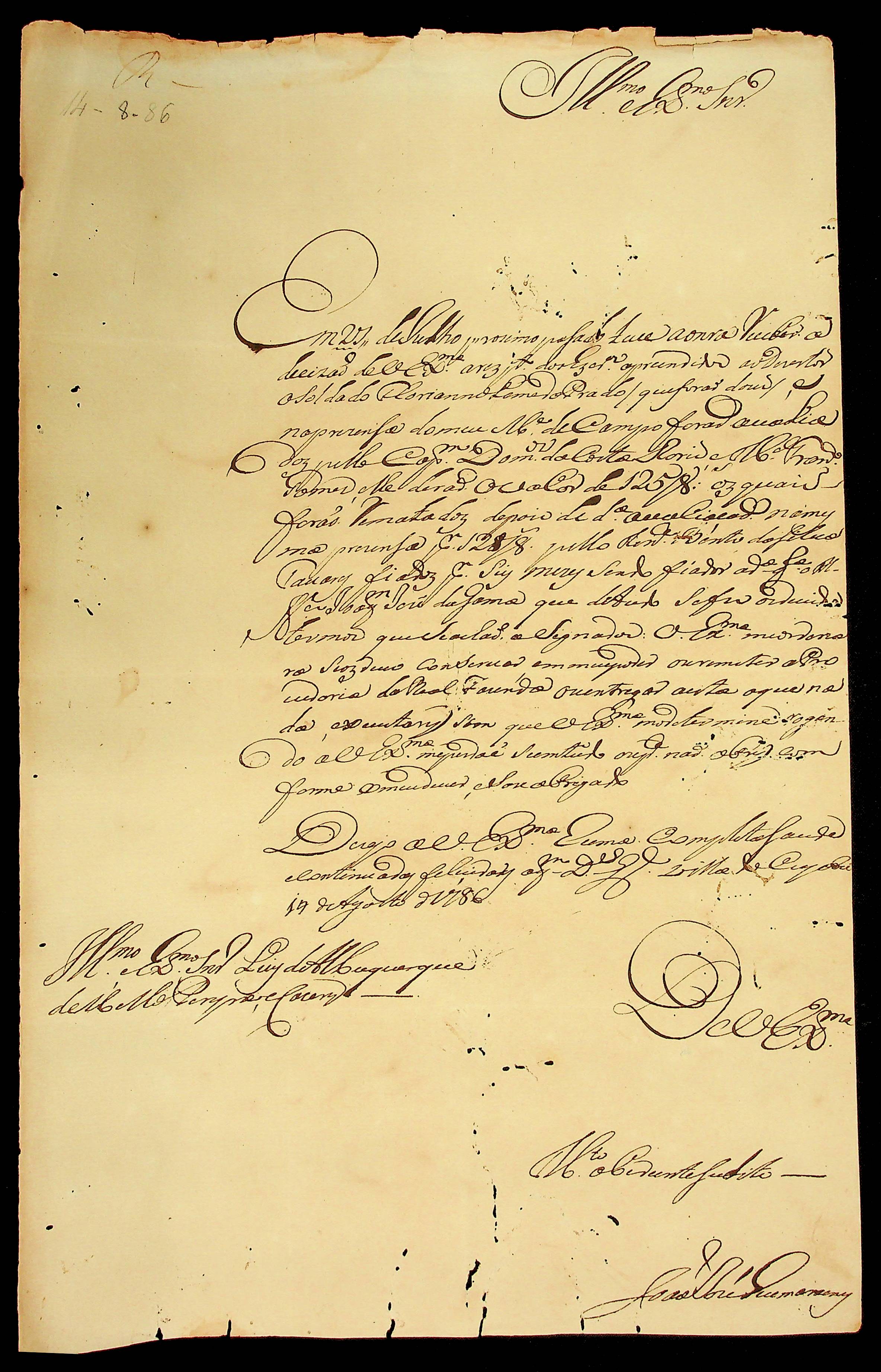 CARTA de João José Guimarães ao [Governador e Capitão-General de Mato Grosso] Luiz de Albuquerque de Mello Pereira e Cáceres.