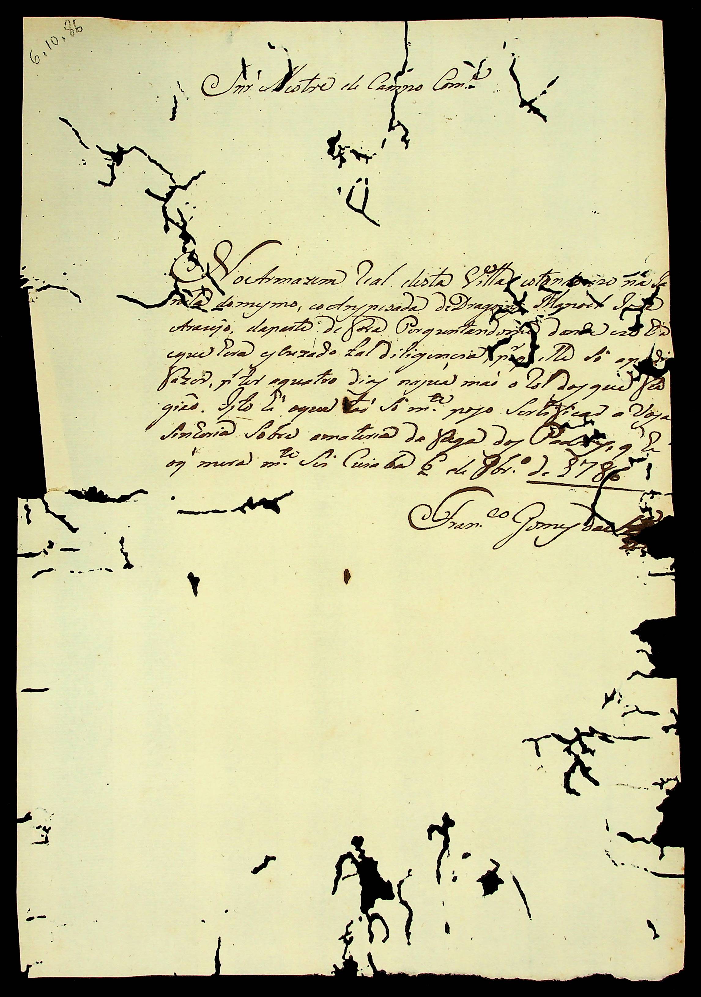 CARTA de Francisco Gomes […] ao Mestre de Campo Antônio José Pinto de Figueiredo.
