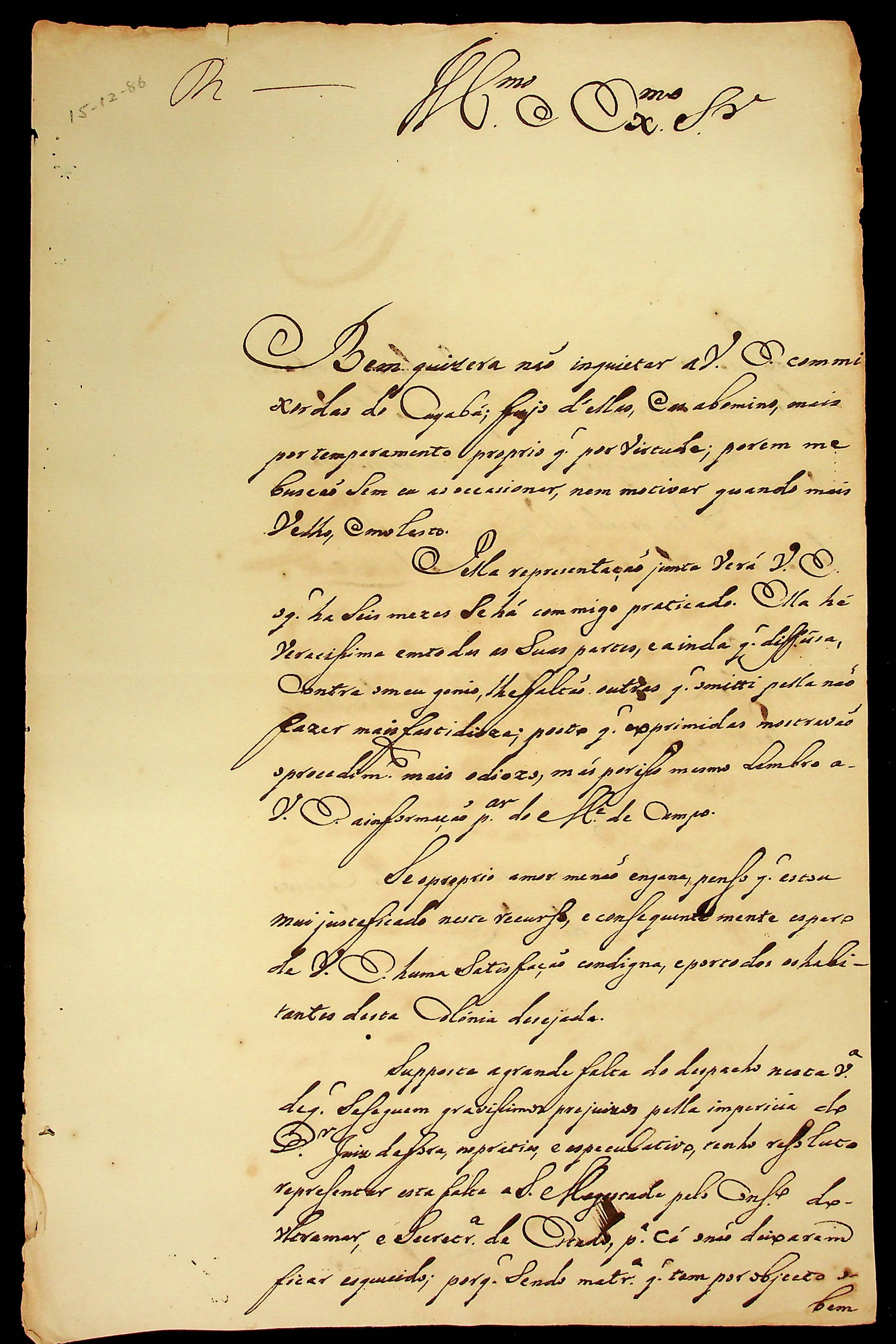 CARTA de Francisco Pereira dos Guimarães ao [Governador e Capitão-General da Capitania de Mato Grosso] Luiz de Albuquerque de Mello Pereira e Cáceres.