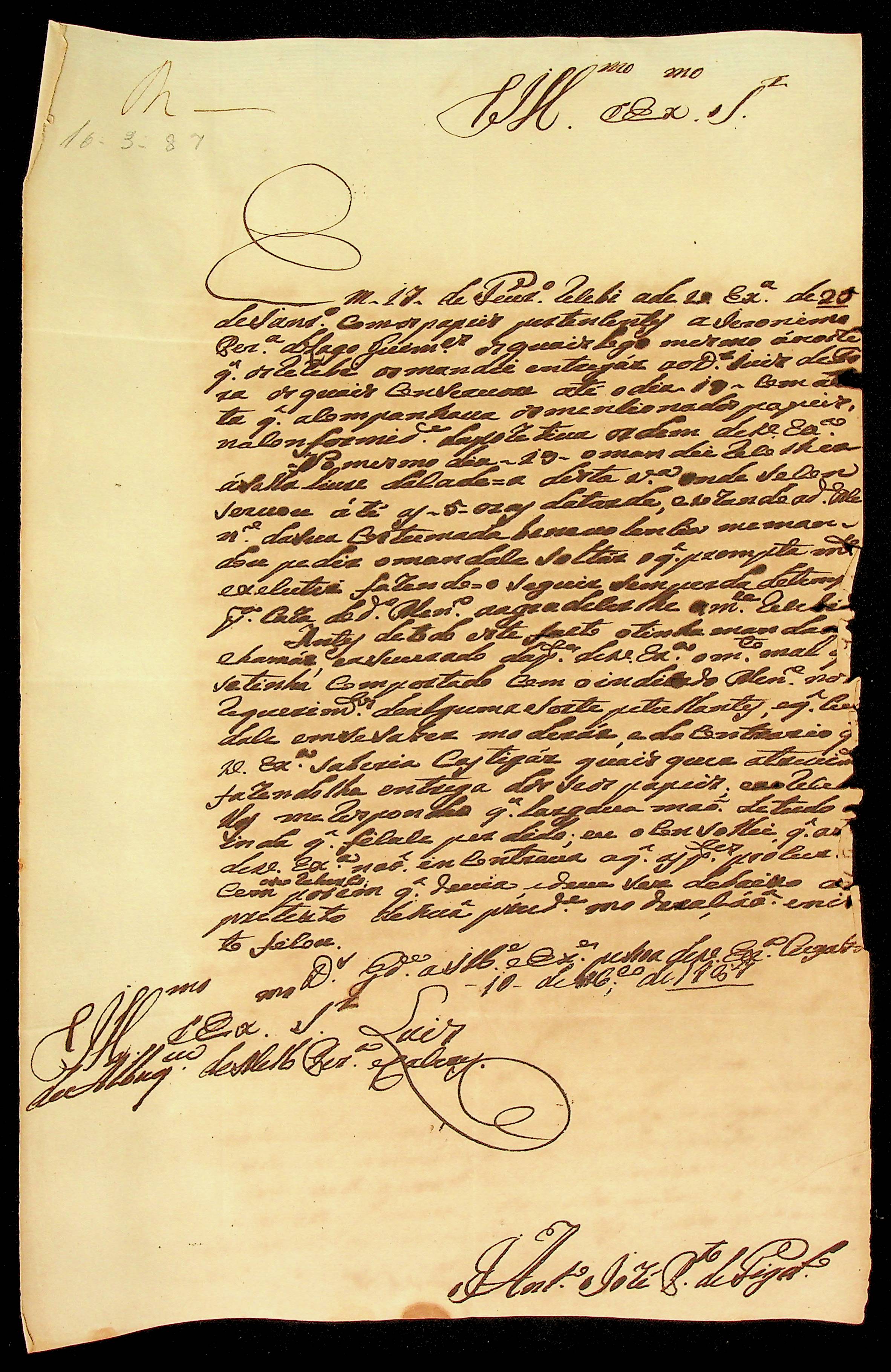 CARTA do [Mestre de Campo] Antônio José Pinto de Figueiredo ao [Governador e Capitão-General da Capitania de Mato Grosso] Luiz de Albuquerque de Mello Pereira e Cáceres.
