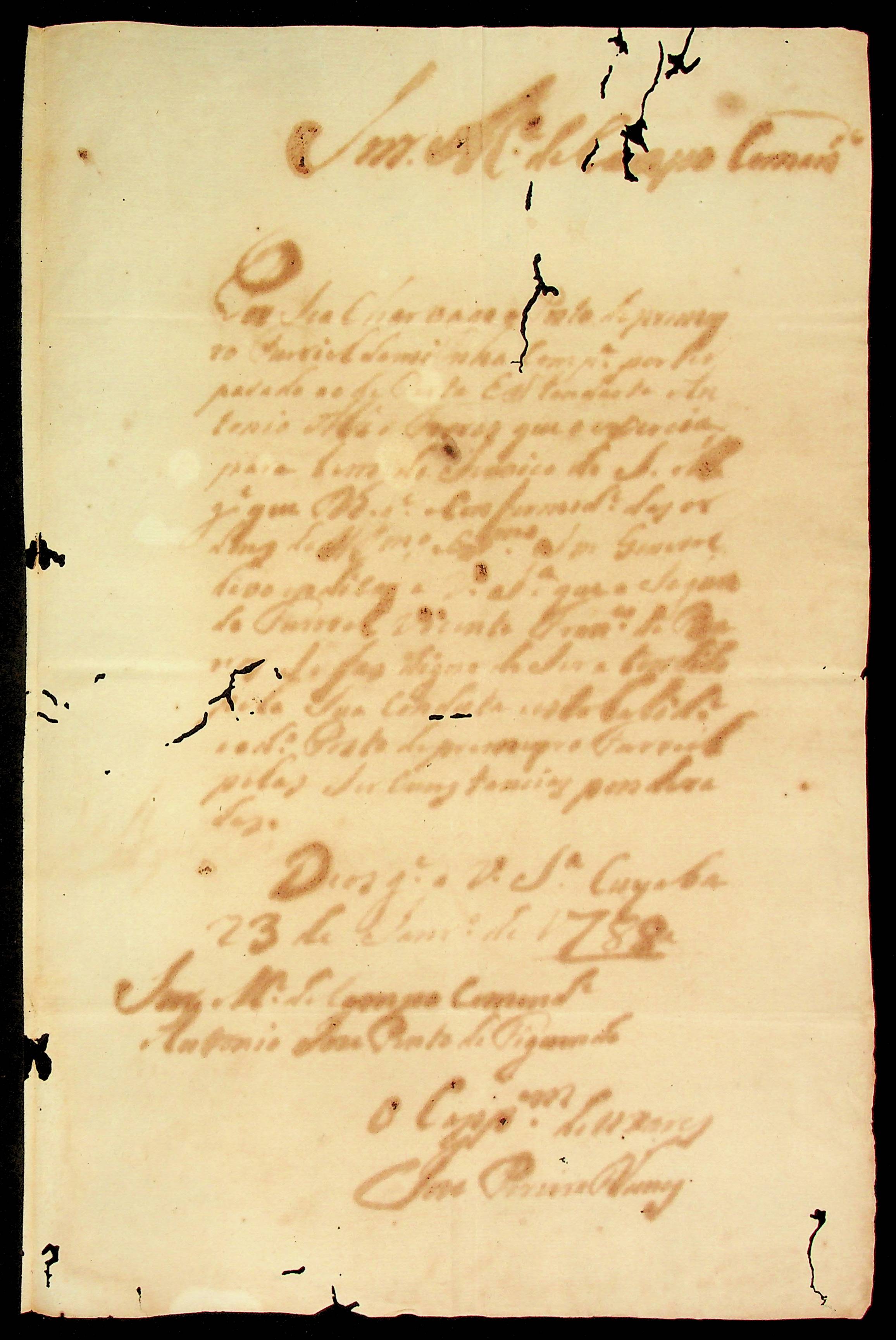 CARTA do Capitão das Ordenanças da Vila de Cuiabá José Pereira Nunes ao Mestre de Campo Antônio José Pinto de Figueiredo.