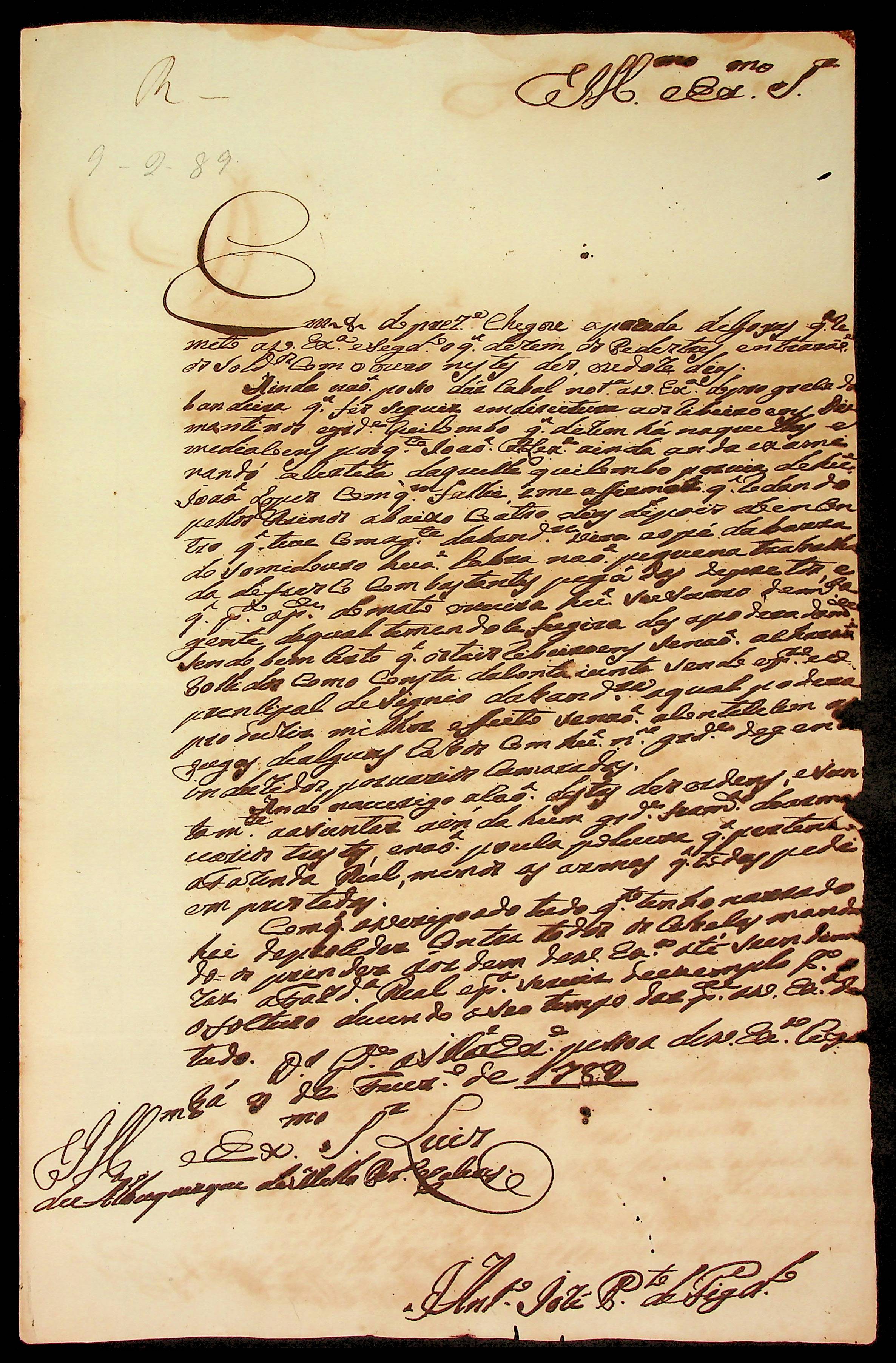 CARTA do [Mestre de Campo] Antônio José Pinto de Figueiredo ao [Governador e Capitão-General da Capitania de Mato Grosso] Luiz de Albuquerque de Mello Pereira e Cáceres.