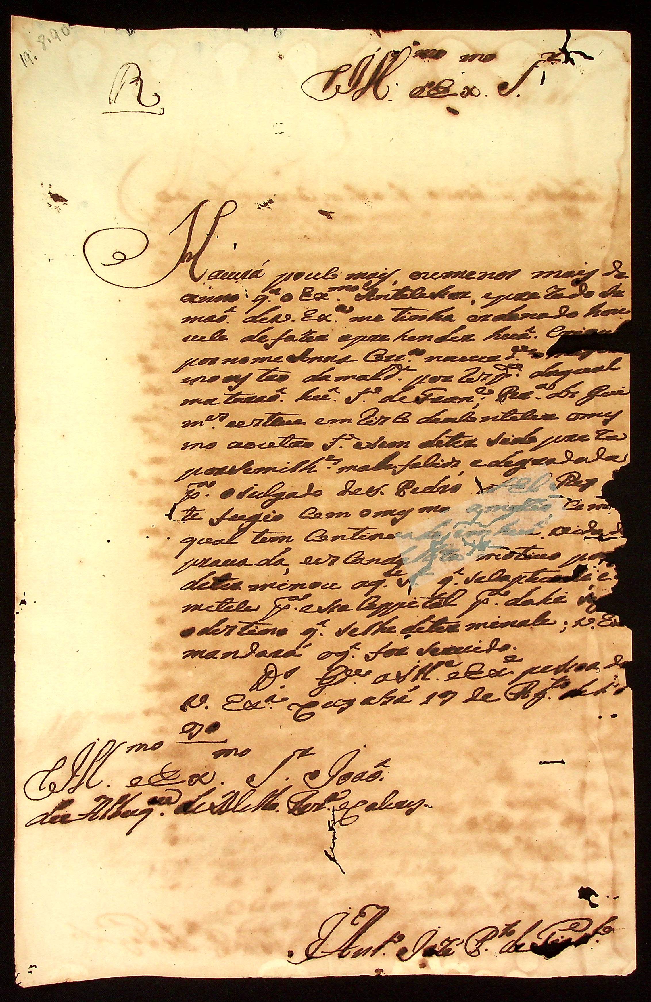 CARTA de Francisco Pedro de Melo ao [Governador e Capitão-General da Capitania de Mato Grosso] João de Albuquerque de Mello Pereira e Cáceres.