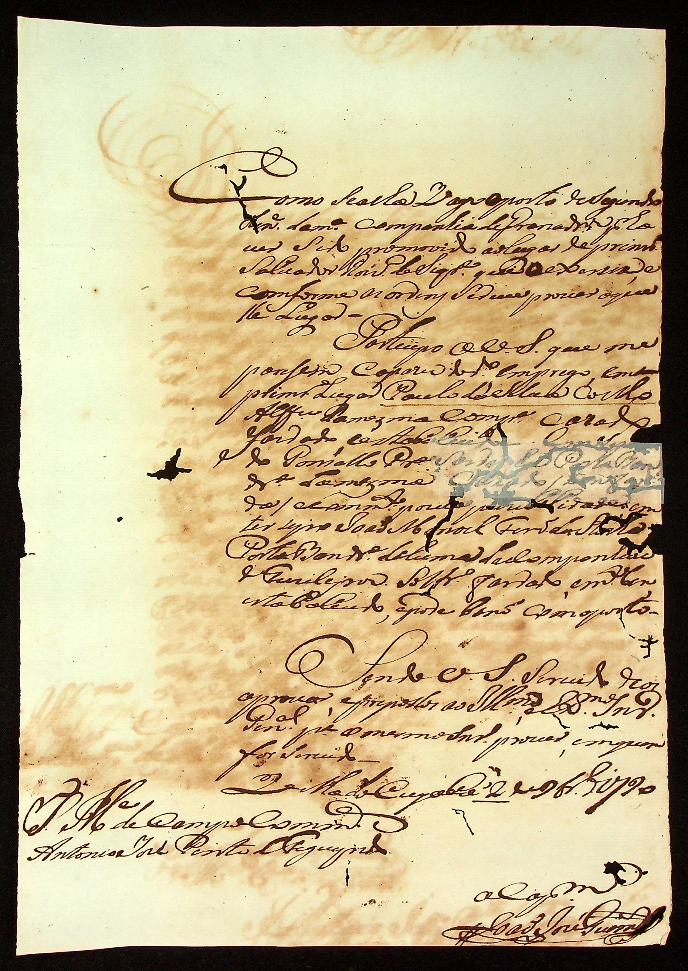 CARTA do [Mestre de Campo] Antônio José Pinto de Figueiredo ao [Governador e Capitão-General da Capitania de Mato Grosso] João de Albuquerque de Mello Pereira e Cáceres.