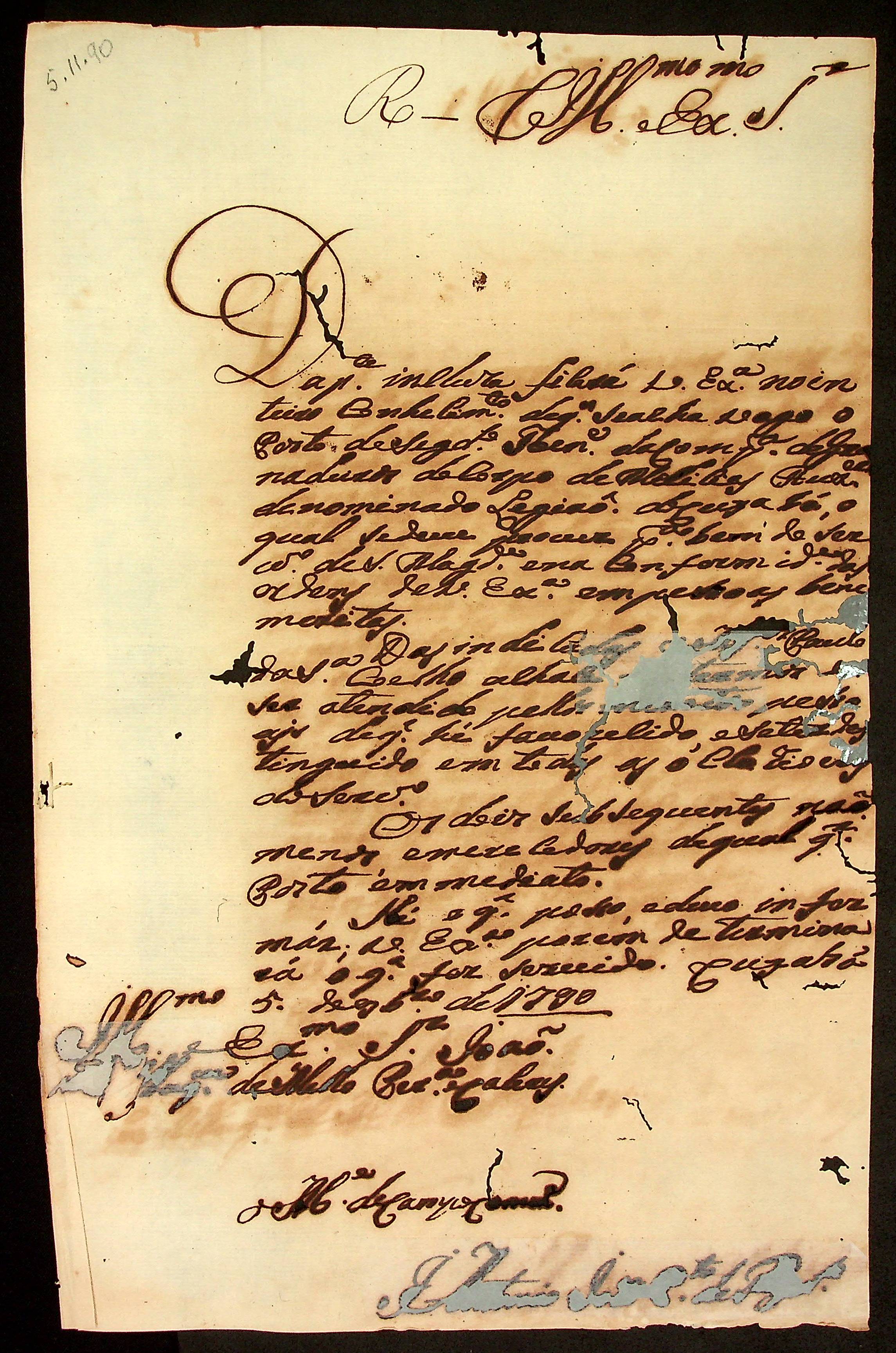 CARTA do [Mestre de Campo] Antônio José Pinto de Figueiredo ao [Governador e Capitão-General da Capitania de Mato Grosso] João de Albuquerque de Mello Pereira e Cáceres.