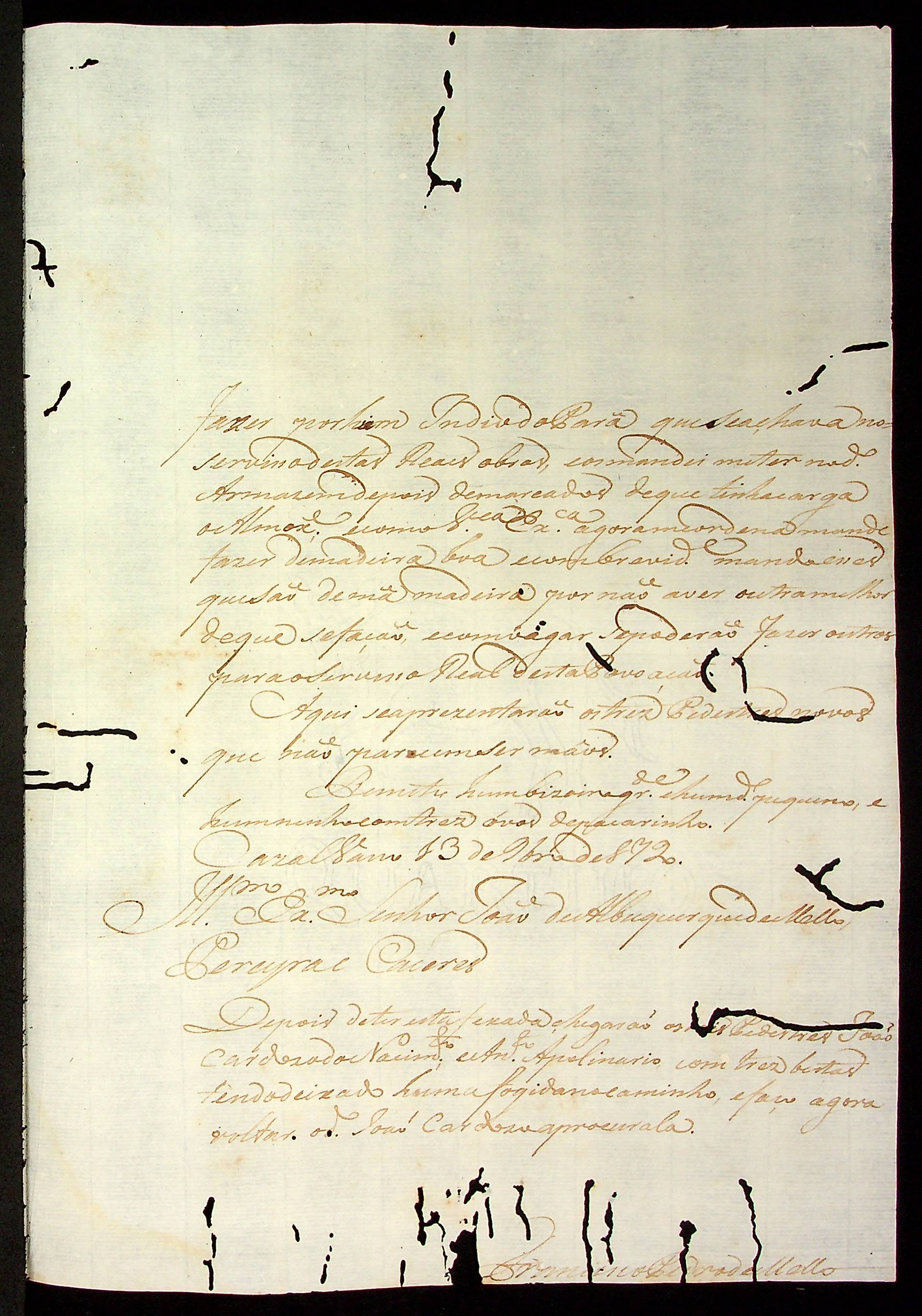 CARTA do [Mestre de Campo] Antônio José Pinto de Figueiredo ao [Governador e Capitão-General da Capitania de Mato Grosso] João de Albuquerque de Mello Pereira e Cáceres.
