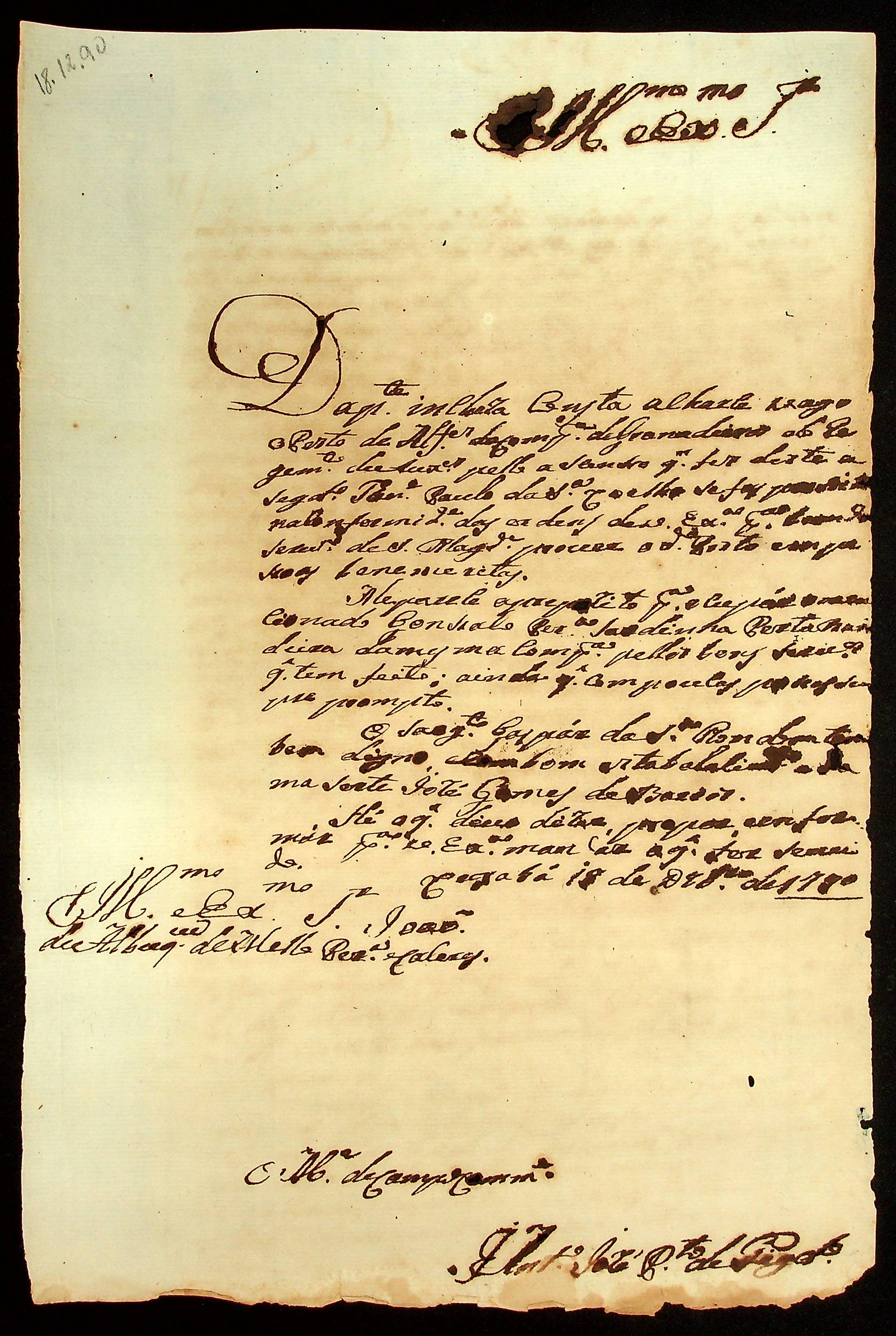 CARTA de Francisco Pedro de Melo ao [Governador e Capitão-General da Capitania de Mato Grosso] João de Albuquerque de Mello Pereira e Cáceres.