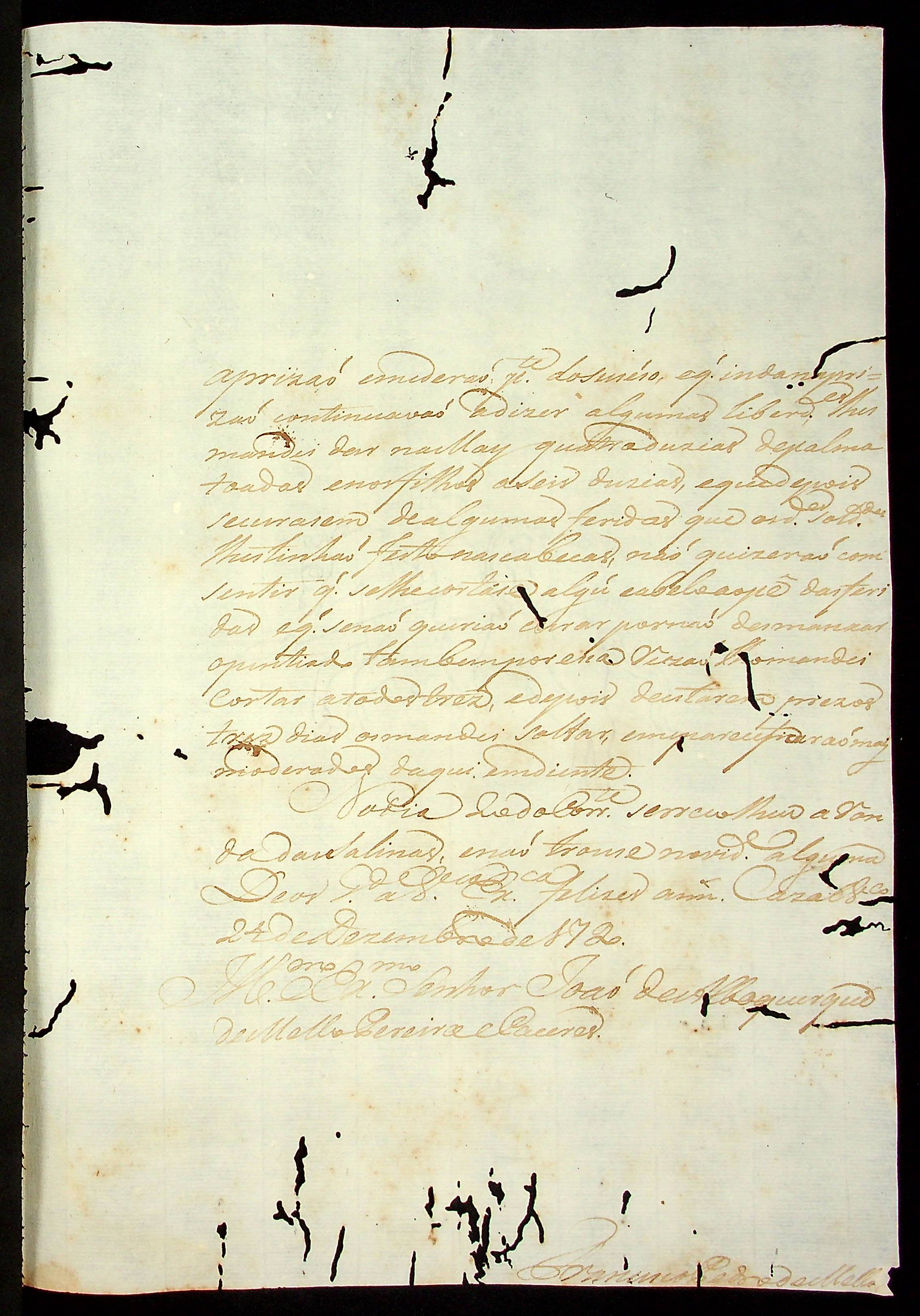 CARTA de Francisco Pedro de Melo ao [Governador e Capitão-General da Capitania de Mato Grosso] João de Albuquerque de Mello Pereira e Cáceres.