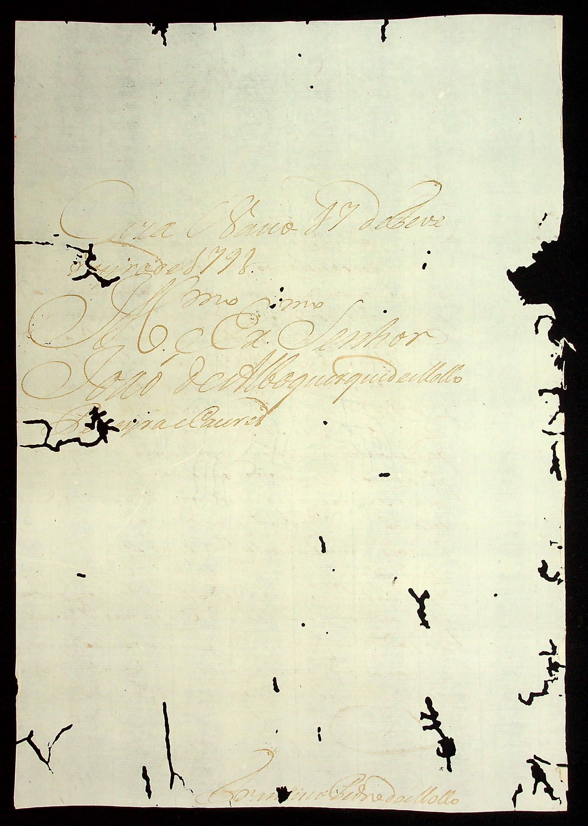 CARTA de Francisco Pedro de Melo ao Governador e Capitão-General da Capitania de Mato Grosso João de Albuquerque de Mello Pereira e Cáceres.