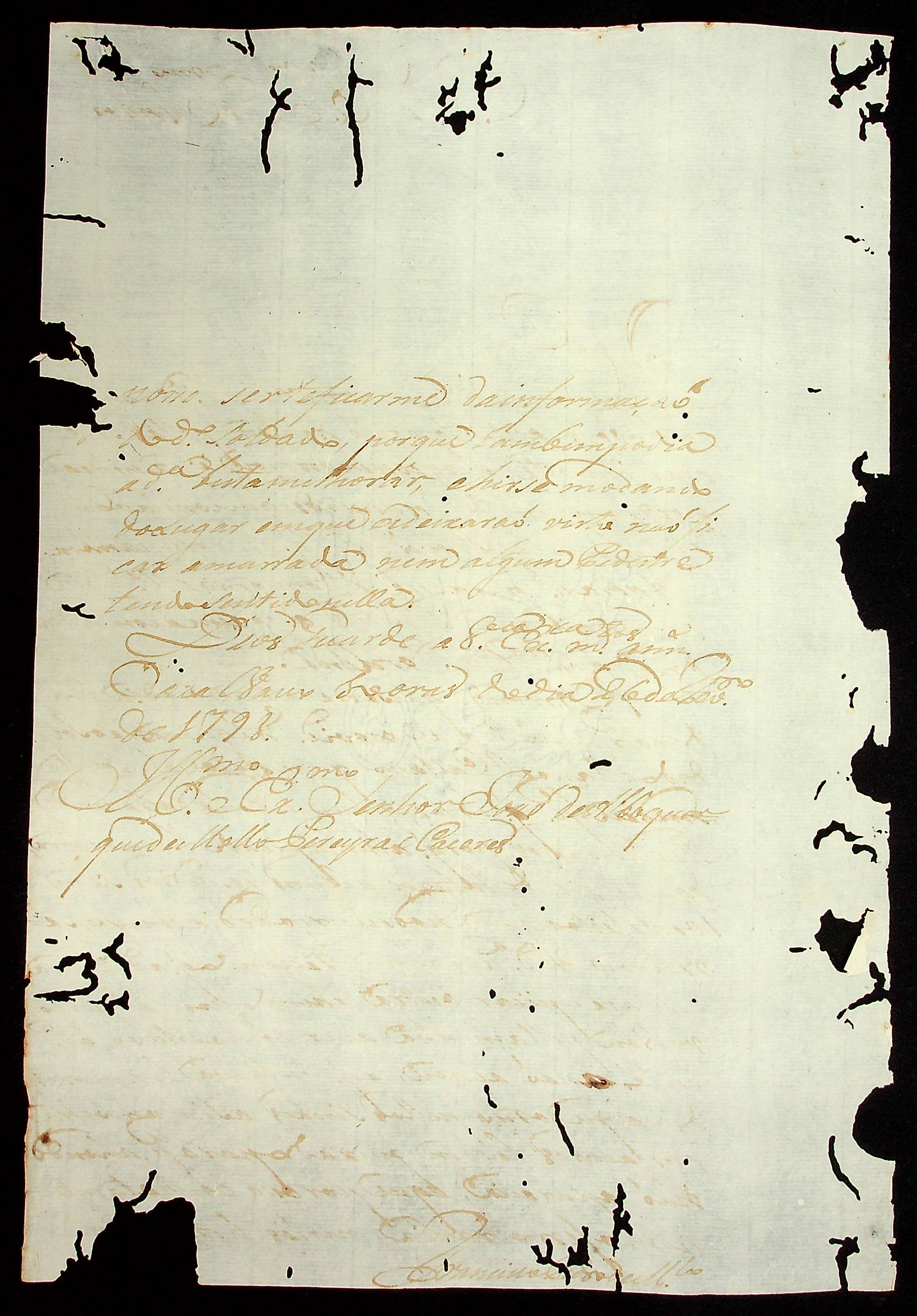 CARTA de Francisco Pedro de Melo ao [Governador e Capitão-General da Capitania de Mato Grosso] João de Albuquerque de Mello Pereira e Cáceres.
