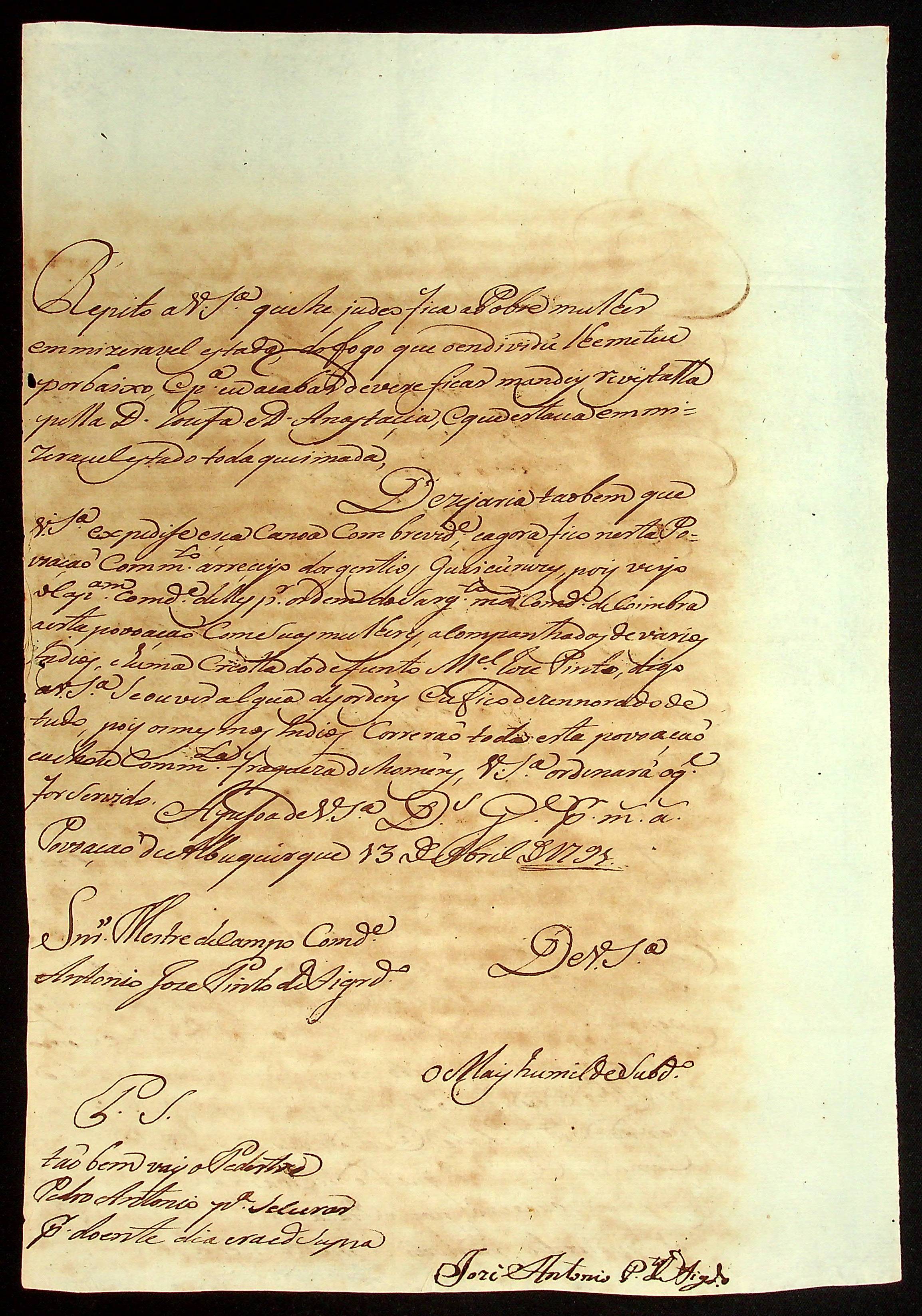 CARTA de Francisco Pedro de Melo ao [Governador e Capitão-General da Capitania de Mato Grosso] João de Albuquerque de Mello Pereira e Cáceres.