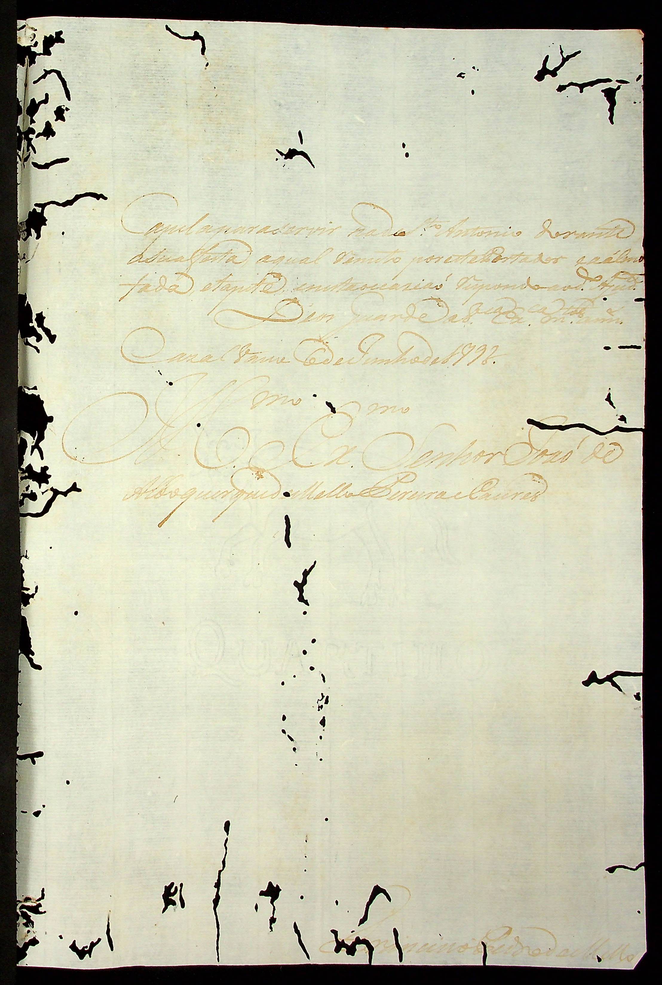 CARTA de Francisco Pedro de Melo ao [Governador e Capitão-General da Capitania de Mato Grosso] João de Albuquerque de Mello Pereira e Cáceres.