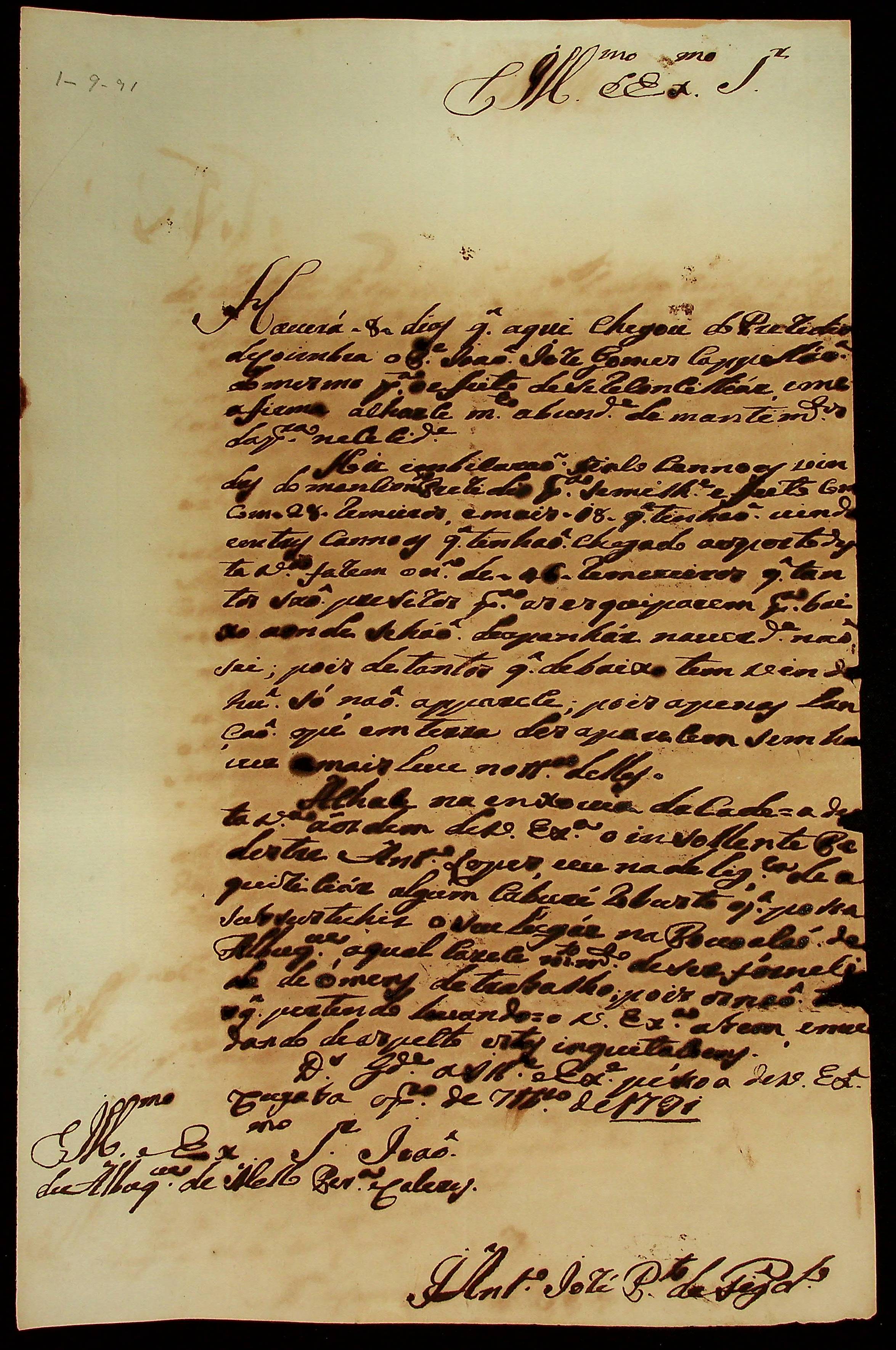 CARTA do [Mestre de Campo] Antônio José Pinto de Figueiredo ao [Governador e Capitão-General da Capitania de Mato Grosso] João de Albuquerque de Mello Pereira e Cáceres.