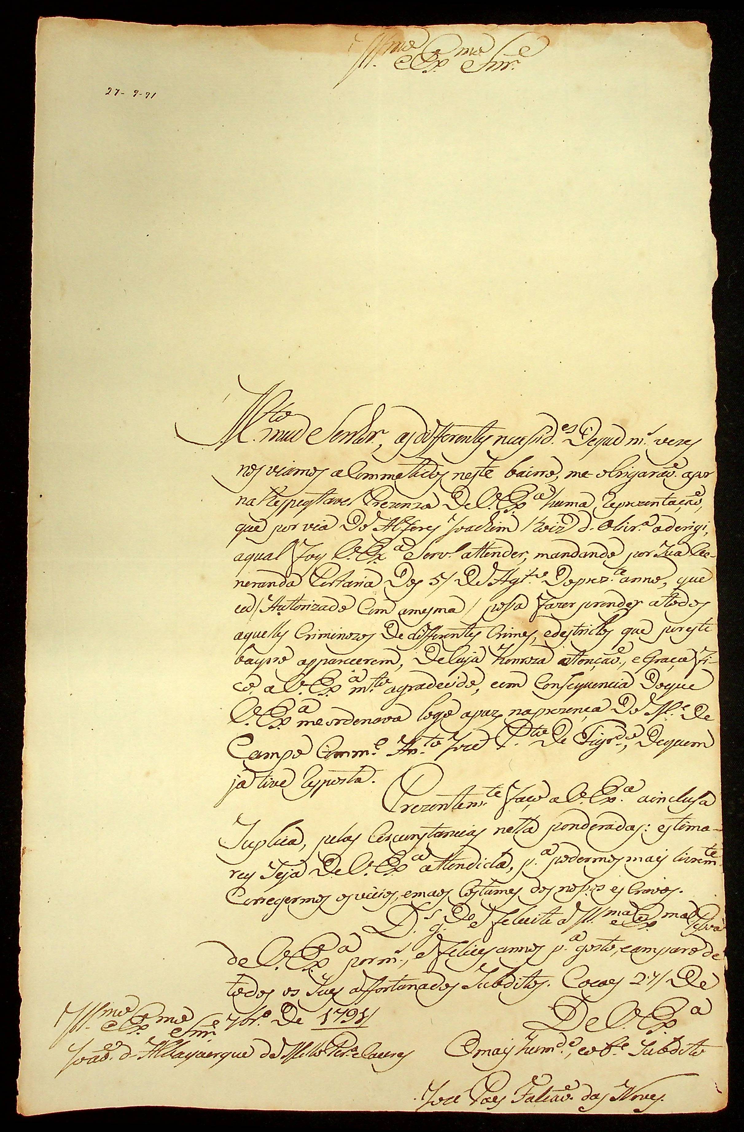 CARTA de Francisco Pedro de Melo ao [Governador e Capitão-General da Capitania de Mato Grosso] João de Albuquerque de Mello Pereira e Cáceres.