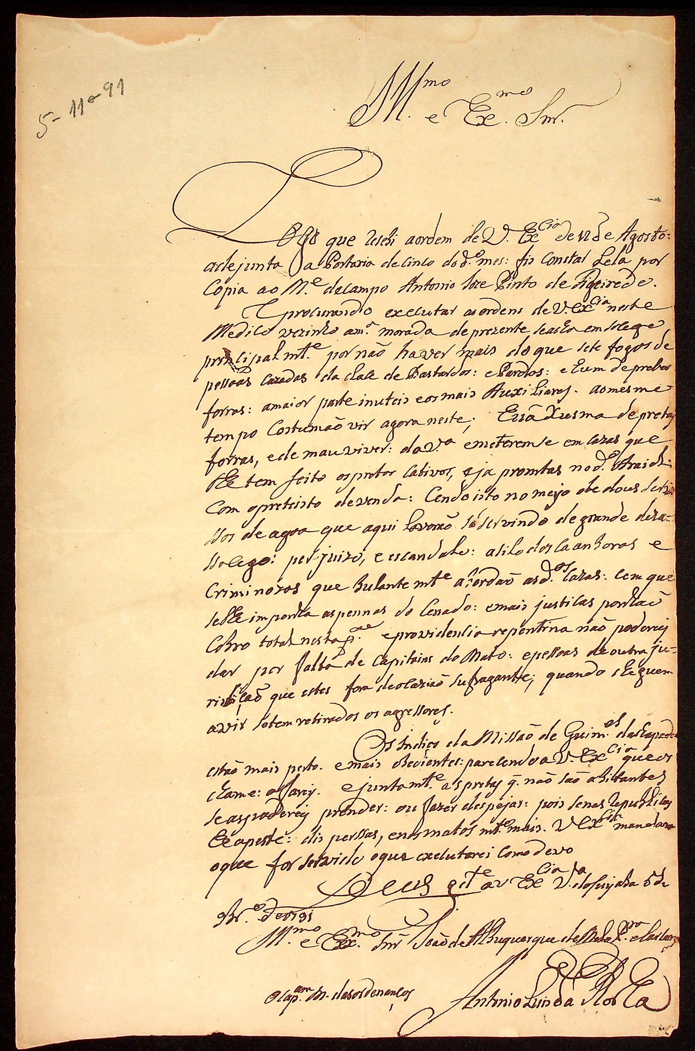 CARTA de Francisco Pedro de Mello ao [Governador e Capitão-General da Capitania de Mato Grosso] João de Albuquerque de Mello Pereira e Cáceres.