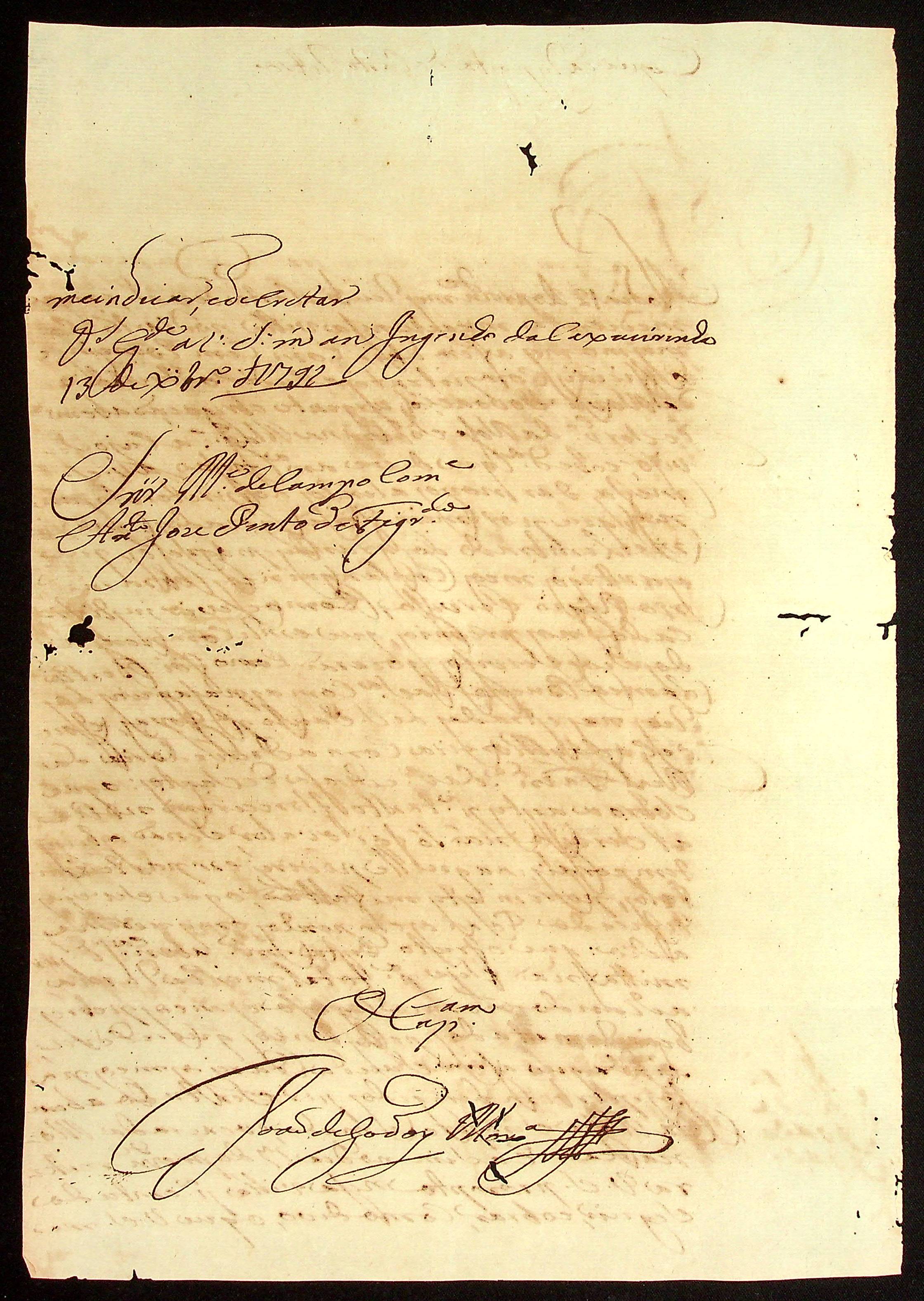 CARTA de João Paes Falcão das Neves ao [Governador e Capitão-General da Capitania de Mato Grosso] João de Albuquerque de Mello Pereira e Cáceres.