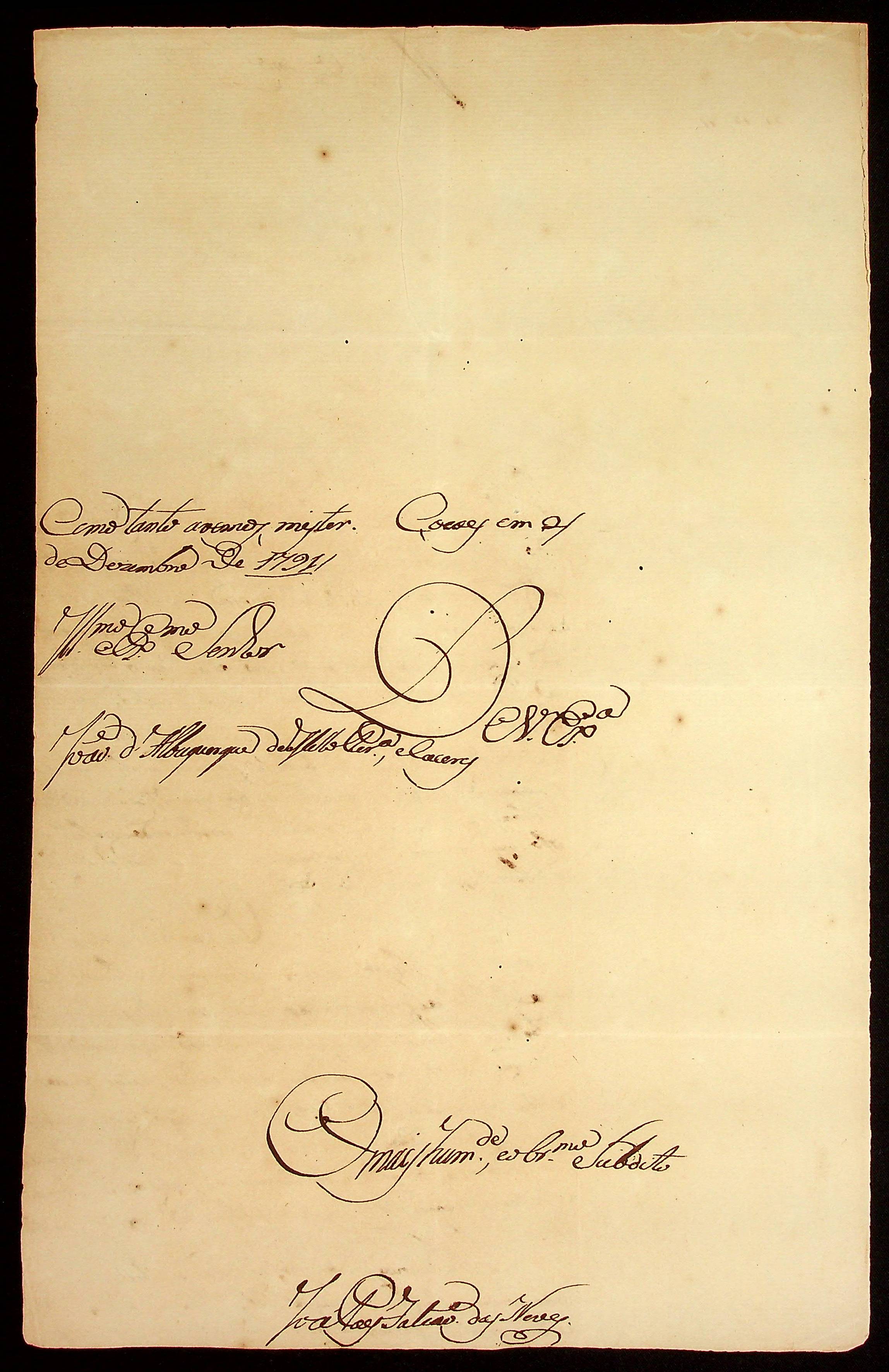 CARTA de Francisco Pedro de Melo ao Governador e Capitão-General da Capitania de Mato Grosso João de Albuquerque de Mello Pereira e Cáceres.