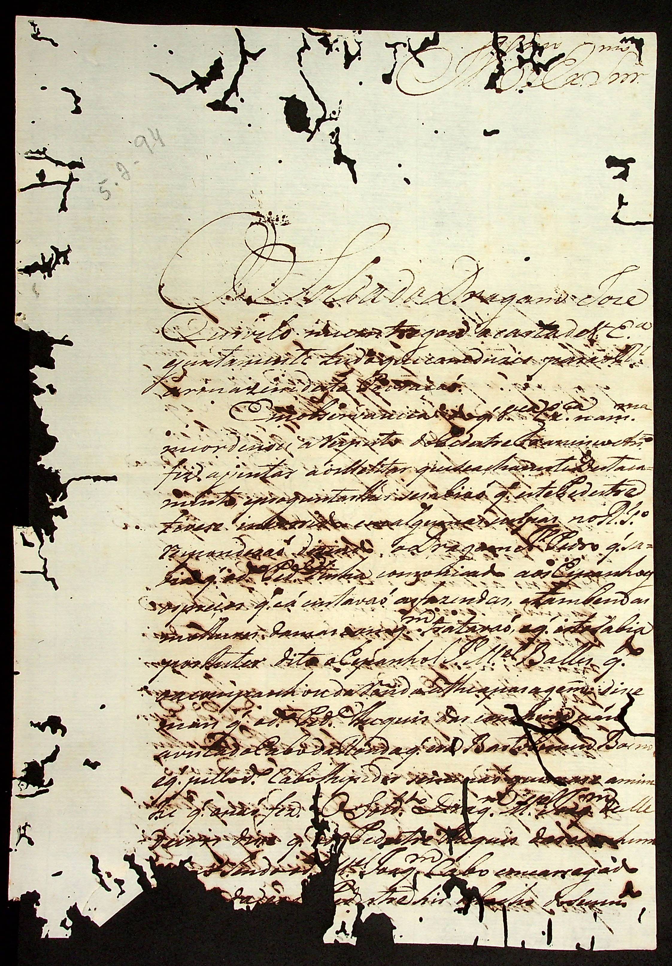 CARTA do [Alferes] Francisco Pedro de Melo ao [Governador e Capitão-General da Capitania de Mato Grosso] João de Albuquerque de Mello Pereira e Cáceres.