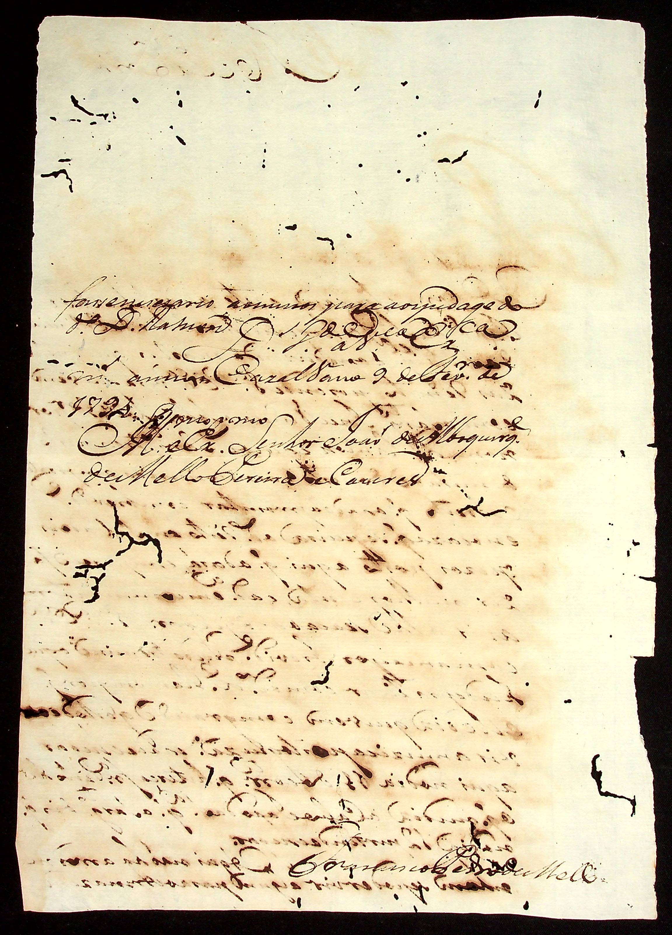CARTA do [Alferes] Francisco Pedro de Melo ao [Governador e Capitão-General da Capitania de Mato Grosso] João de Albuquerque de Mello Pereira e Cáceres.