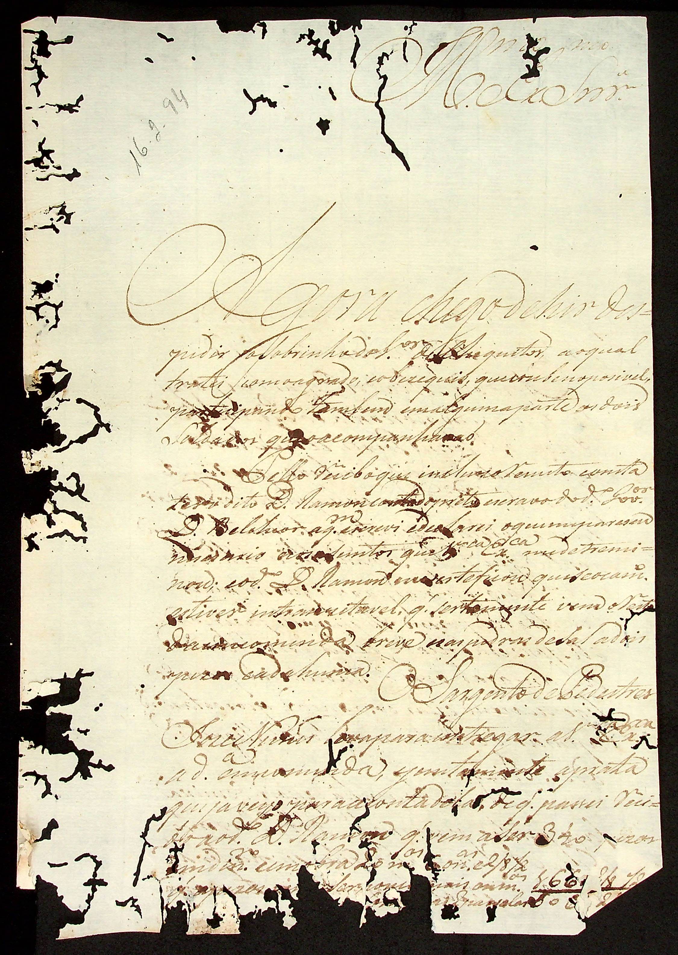 CARTA do [Alferes] Francisco Pedro de Melo ao [Governador e Capitão-General da Capitania de Mato Grosso] João de Albuquerque de Mello Pereira e Cáceres.