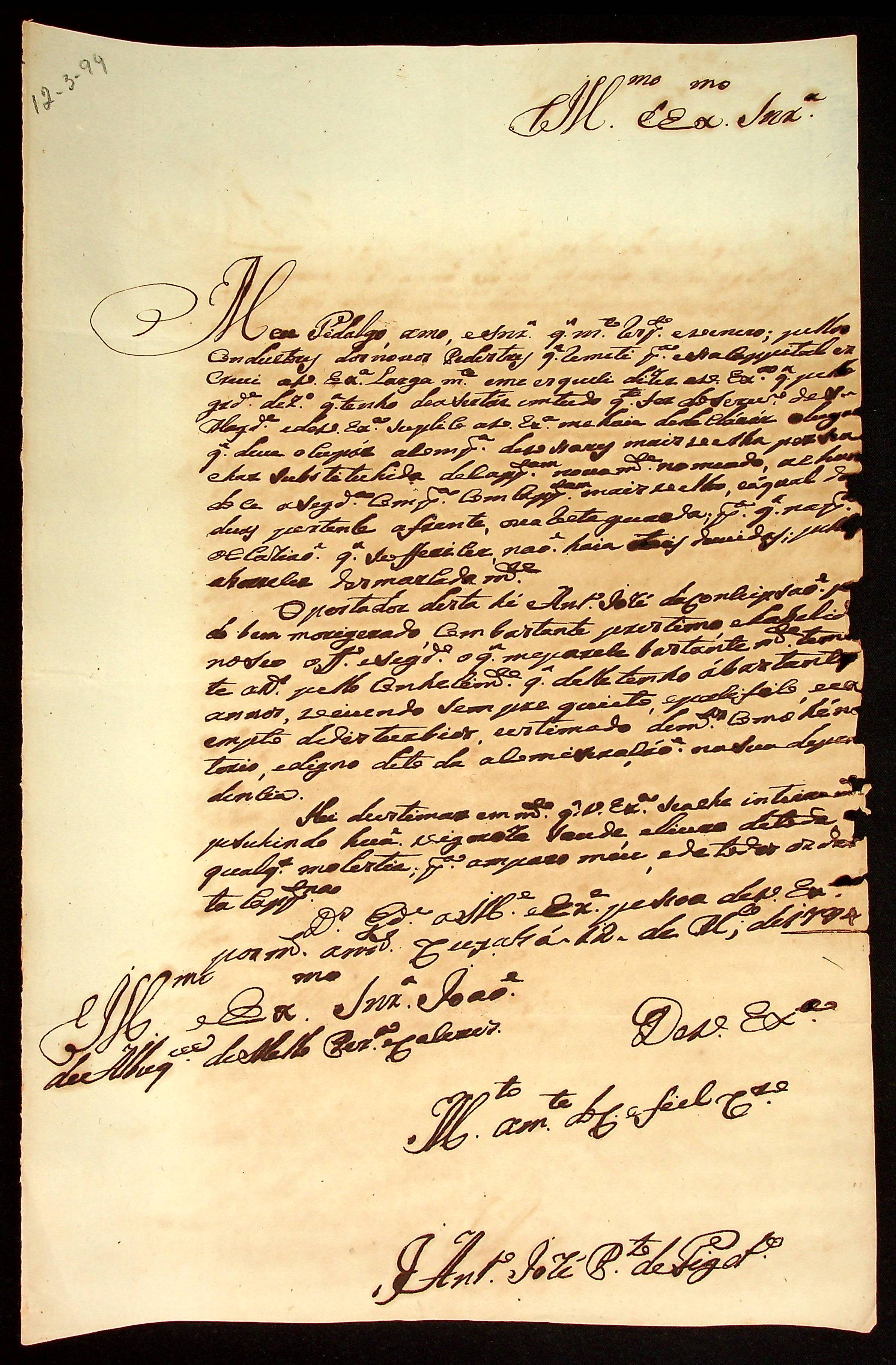CARTA do [Mestre de Campo] Antônio José Pinto de Figueiredo ao [Governador e Capitão-General da Capitania de Mato Grosso] João de Albuquerque de Mello Pereira e Cáceres.