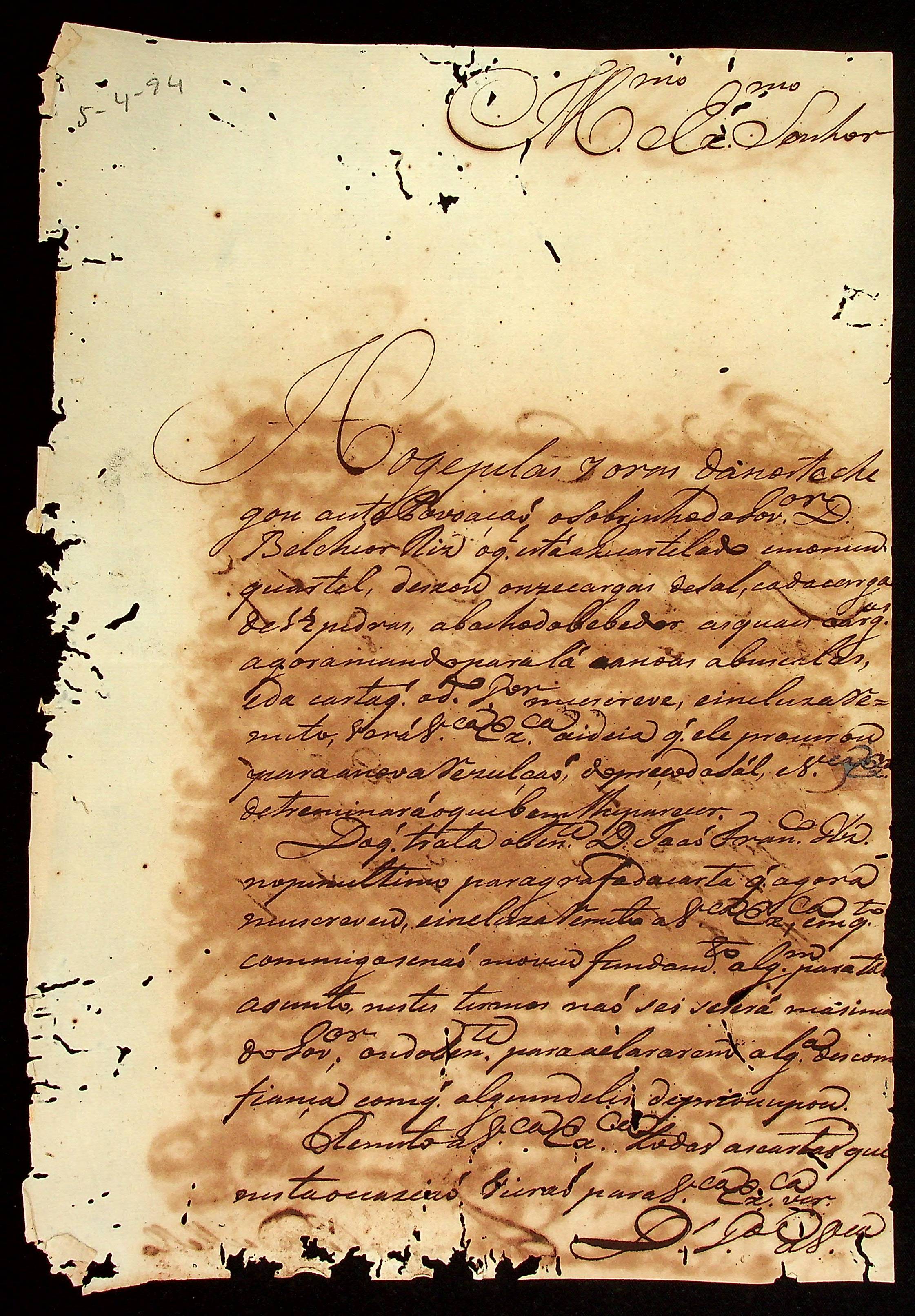 CARTA do [Alferes] Francisco Pedro de Melo ao [Governador e Capitão-General da Capitania de Mato Grosso] João de Albuquerque de Mello Pereira e Cáceres.