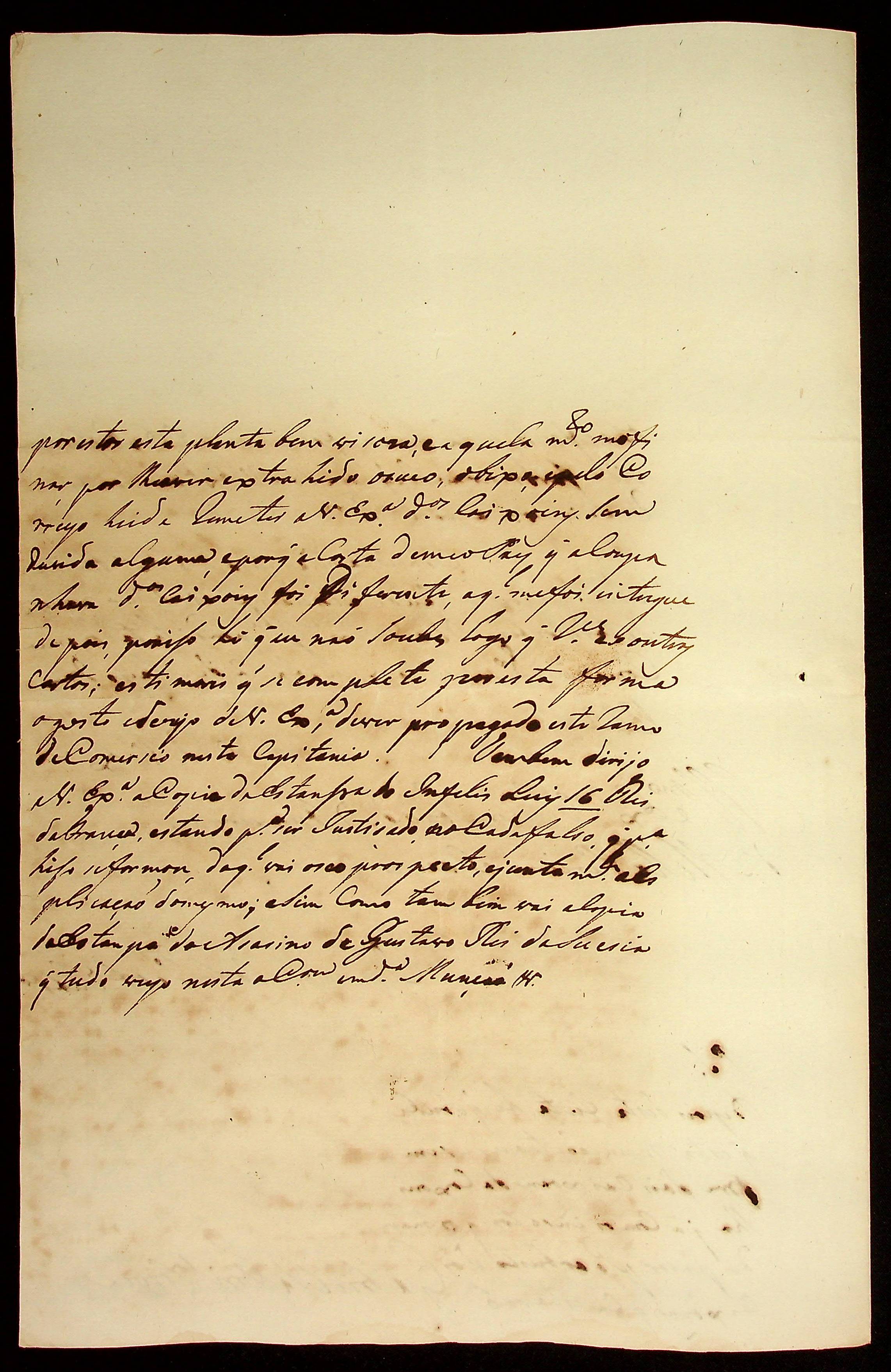 CARTA do [Sargento-mor] Gabriel da Fonseca e Sousa ao Governador e Capitão-General da Capitania de Mato Grosso João de Albuquerque de Mello Pereira e Cáceres.