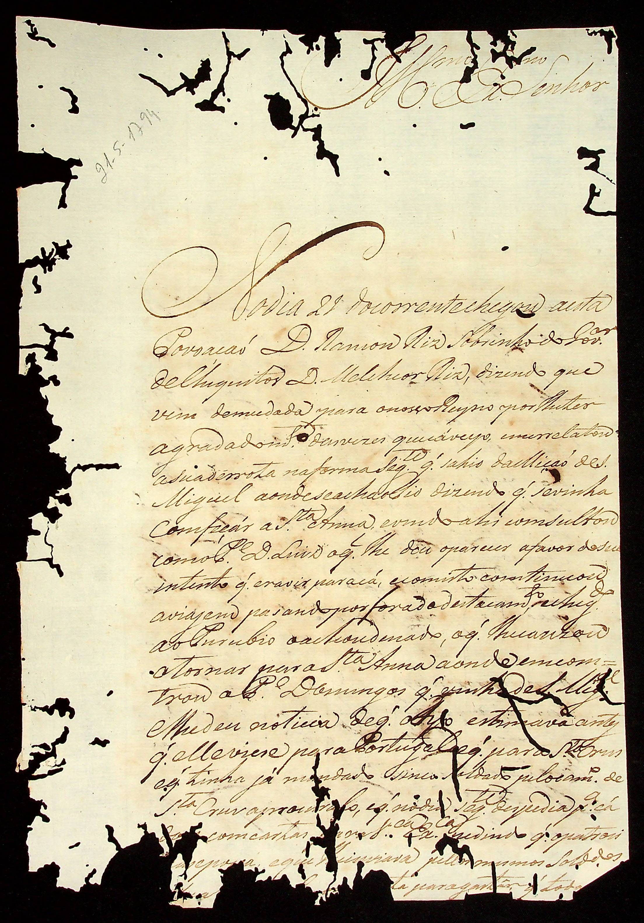 CARTA do [Alferes Francisco Pedro de Melo] ao [Governador e Capitão-General da Capitania de Mato Grosso] João de Albuquerque de Mello Pereira e Cáceres.