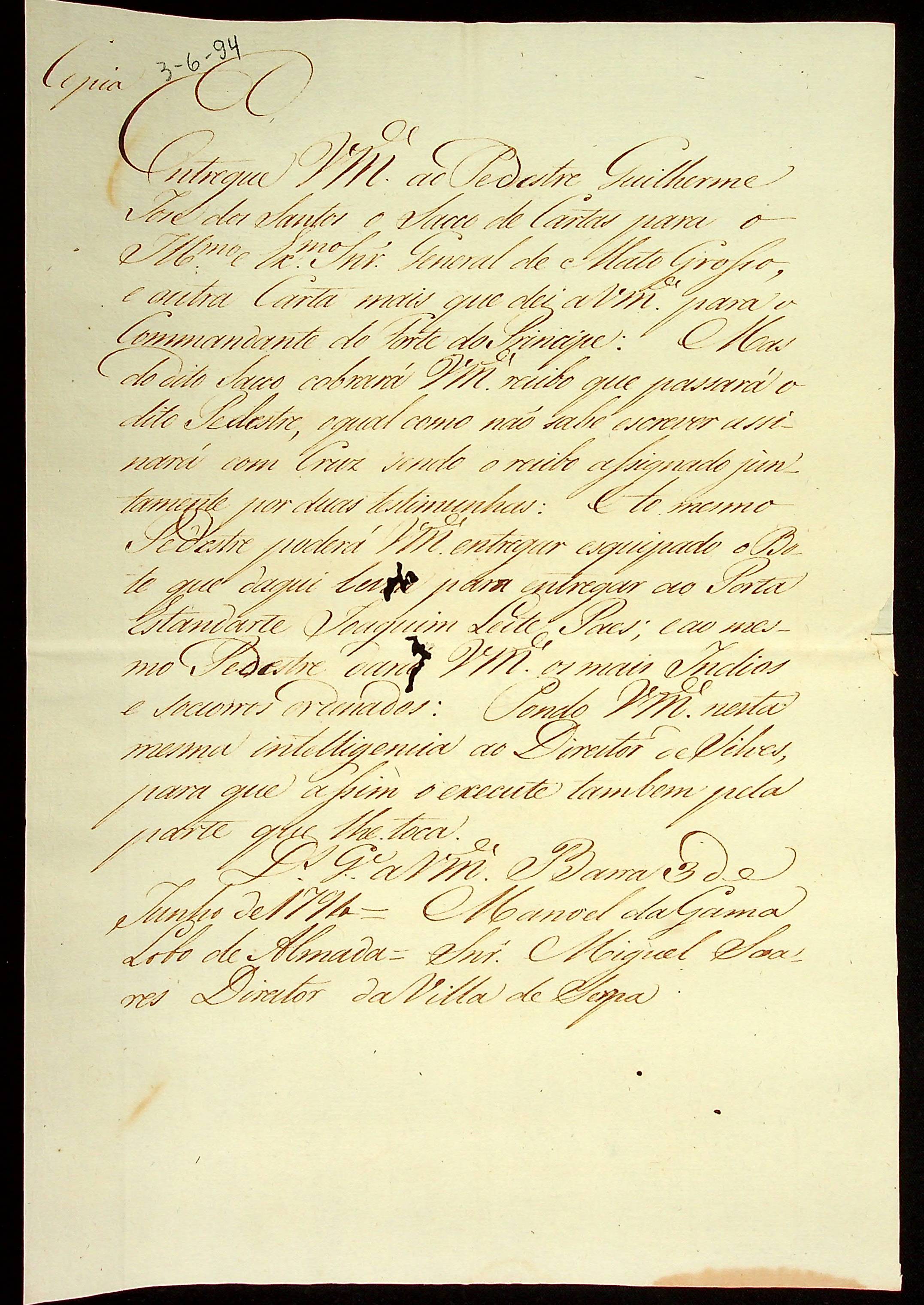 CARTA (cópia) de Manoel da Gama Lobo de Almada.
