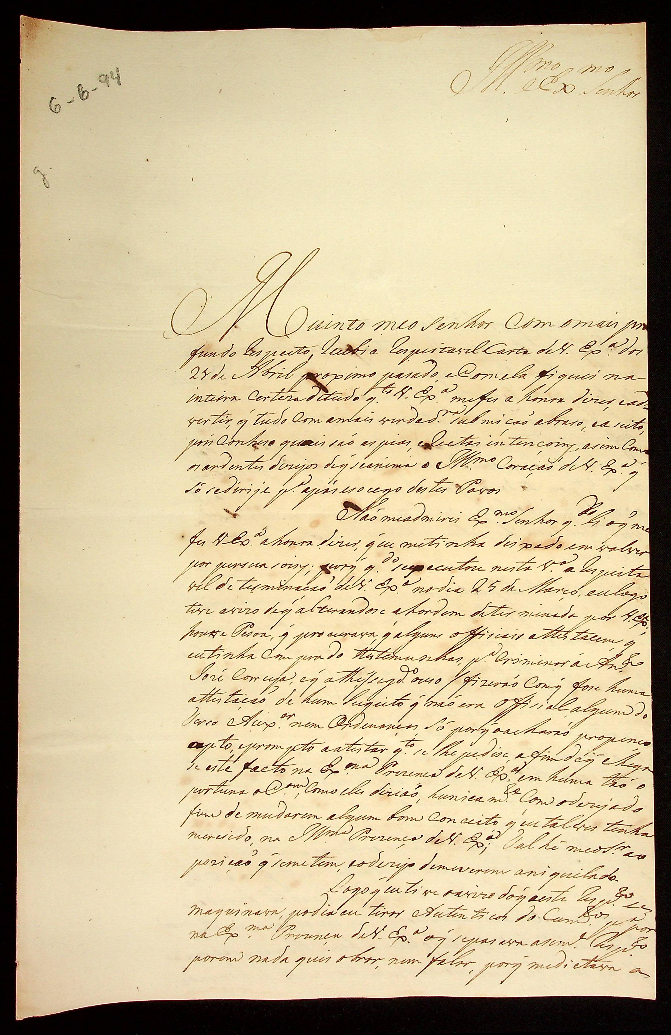 CARTA de Gabriel da Fonseca e Sousa ao [Governador e Capitão-General da Capitania de Mato Grosso] João de Albuquerque de Mello Pereira e Cáceres.