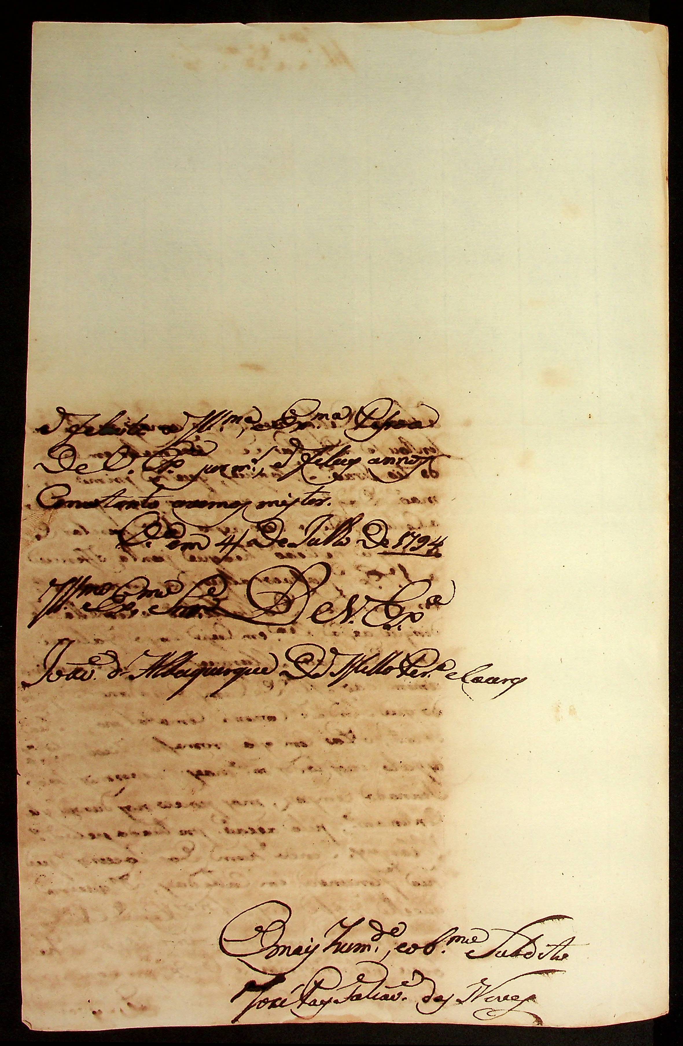 CARTA de José Paes Falcão das Neves ao Governador e Capitão-General da Capitania de Mato Grosso João de Albuquerque de Mello Pereira e Cáceres.