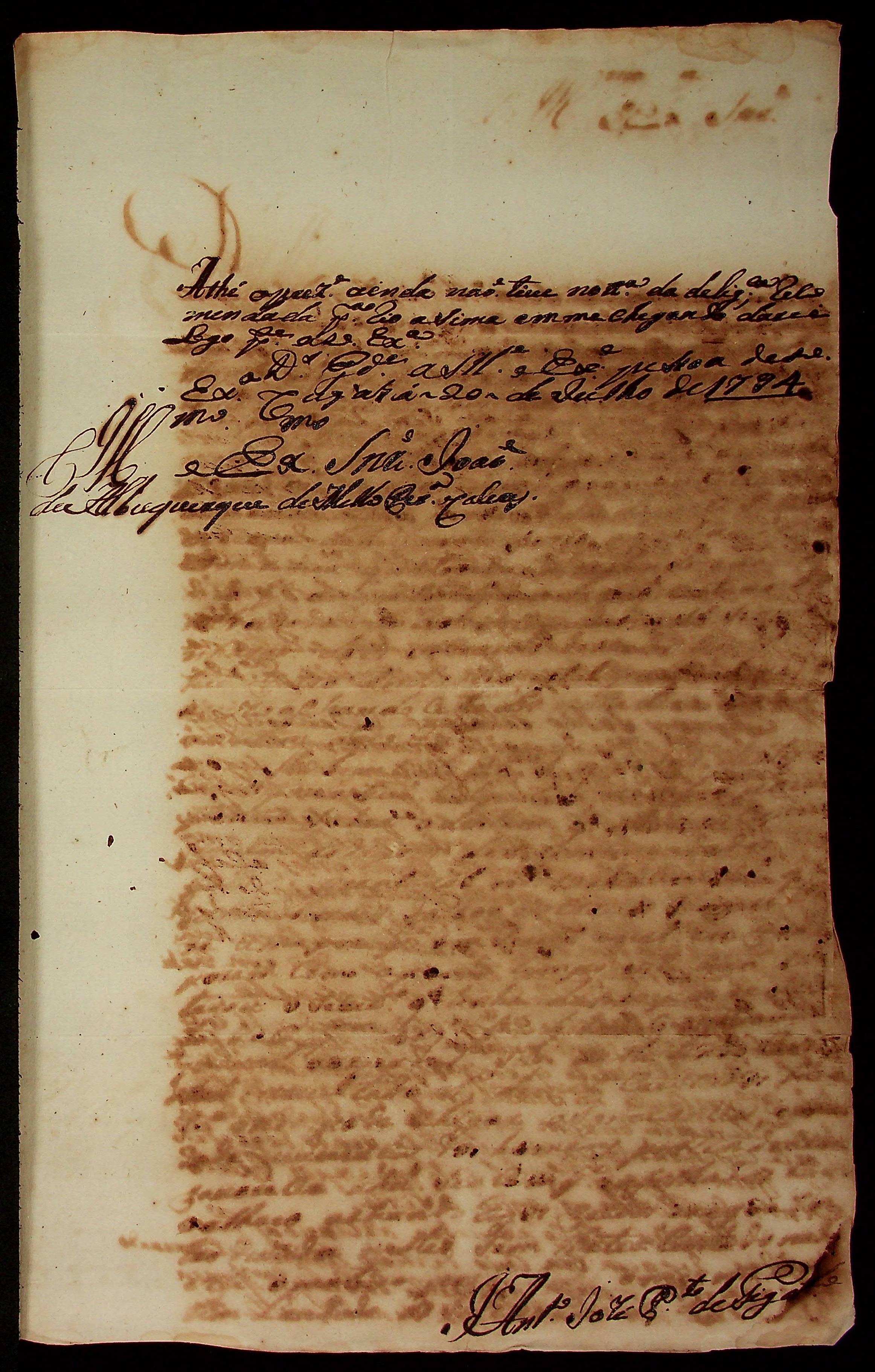 CARTA do Mestre de Campo Antônio José Pinto de Figueiredo ao [Governador e Capitão-General da Capitania de Mato Grosso] João de Albuquerque de Mello Pereira e Cáceres.