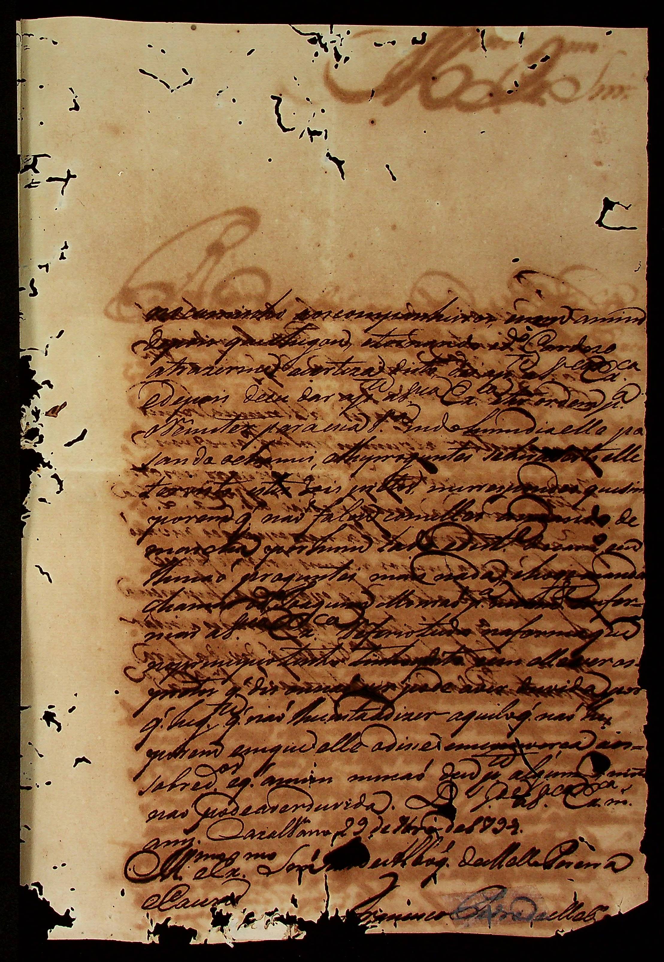 CARTA do [Alferes] Francisco Pedro de Melo ao [Governador e Capitão-General da Capitania de Mato Grosso] João de Albuquerque de Mello Pereira e Cáceres.