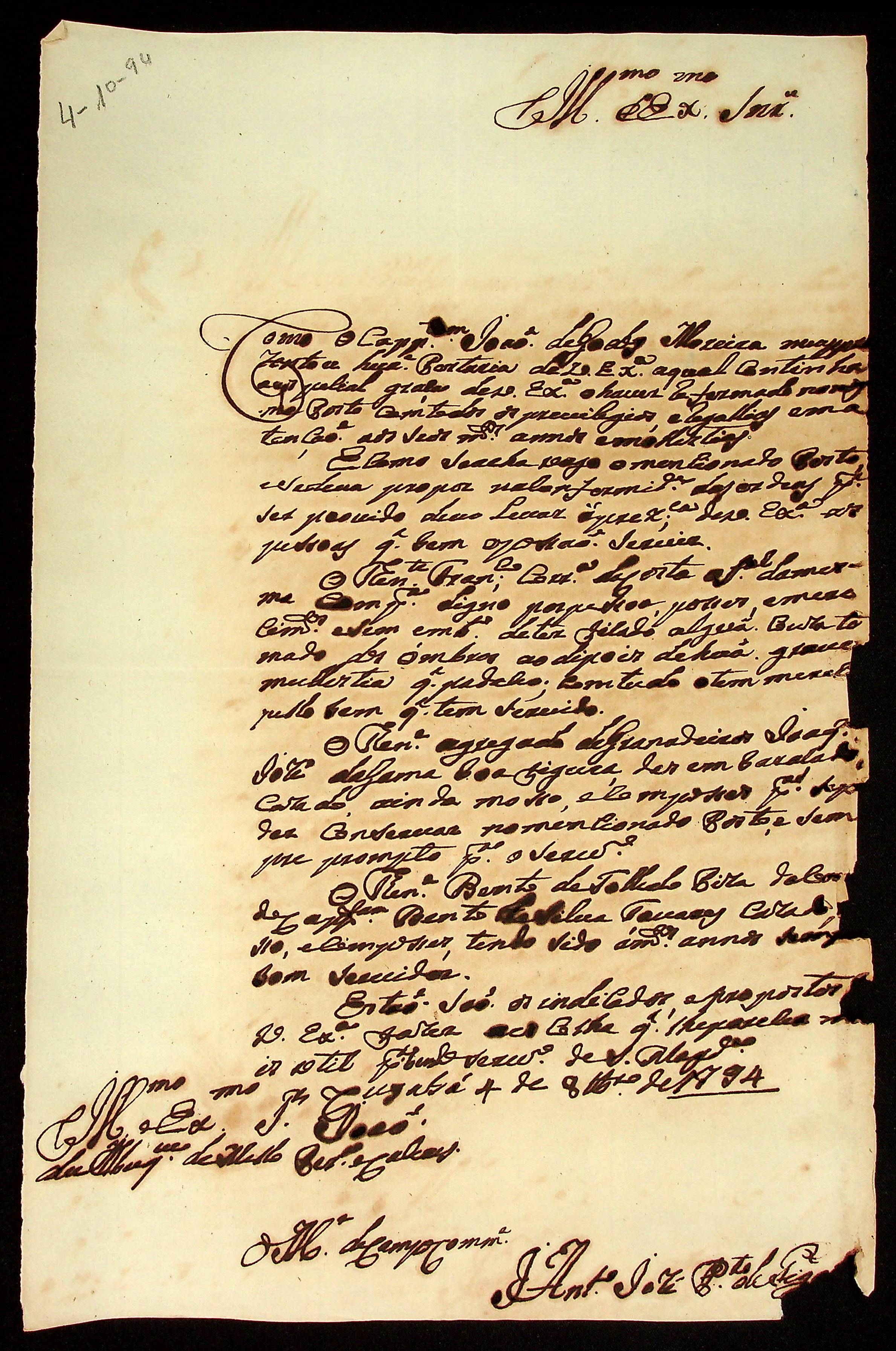 CARTA do Mestre de Campo Antônio José Pinto de Figueiredo ao [Governador e Capitão-General da Capitania de Mato Grosso] João de Albuquerque de Mello Pereira e Cáceres.
