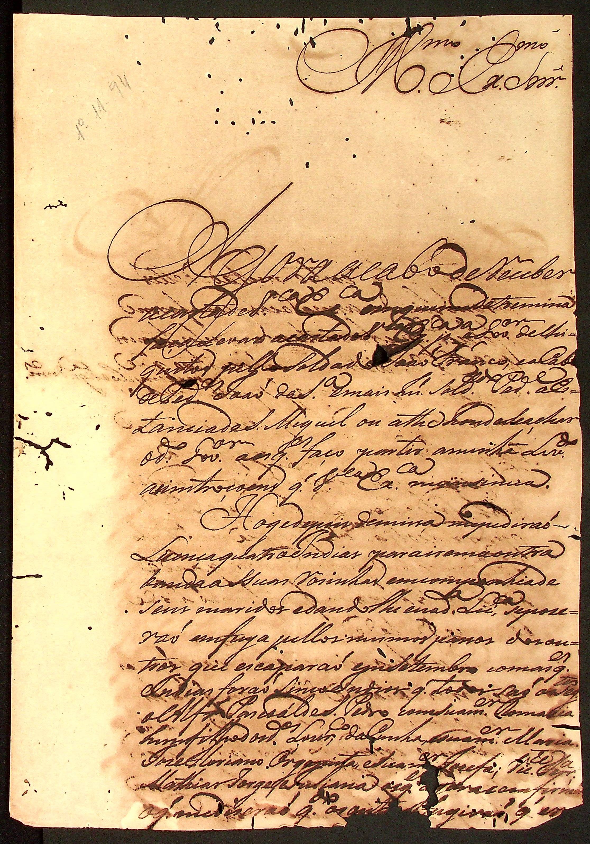 CARTA do [Alferes] Francisco Pedro de Melo ao [Governador e Capitão-General da Capitania de Mato Grosso] João de Albuquerque de Mello Pereira e Cáceres.