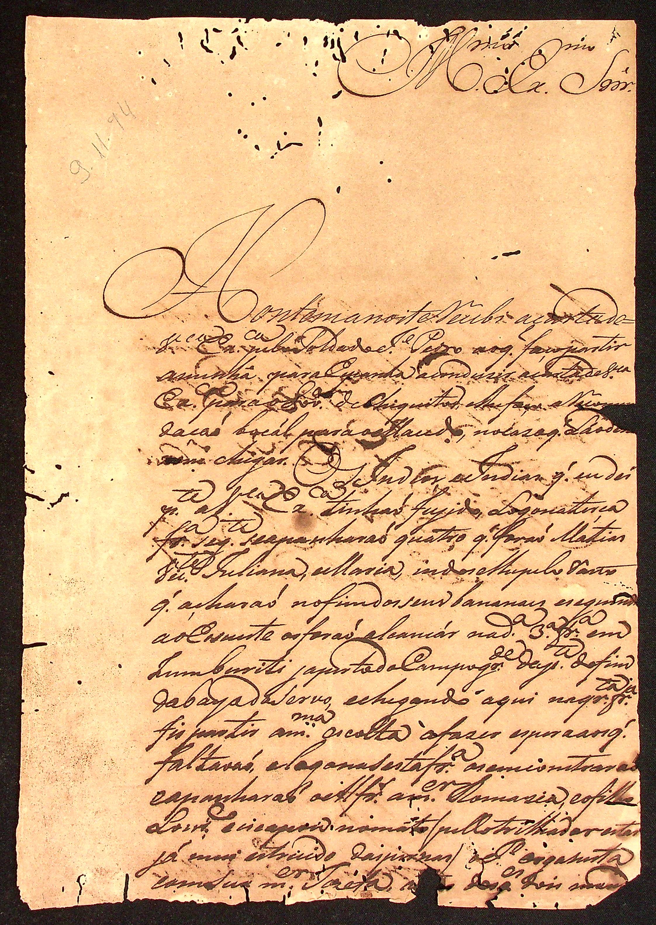 CARTA do [Alferes] Francisco Pedro de Melo ao [Governador e Capitão-General da Capitania de Mato Grosso] João de Albuquerque de Mello Pereira e Cáceres.
