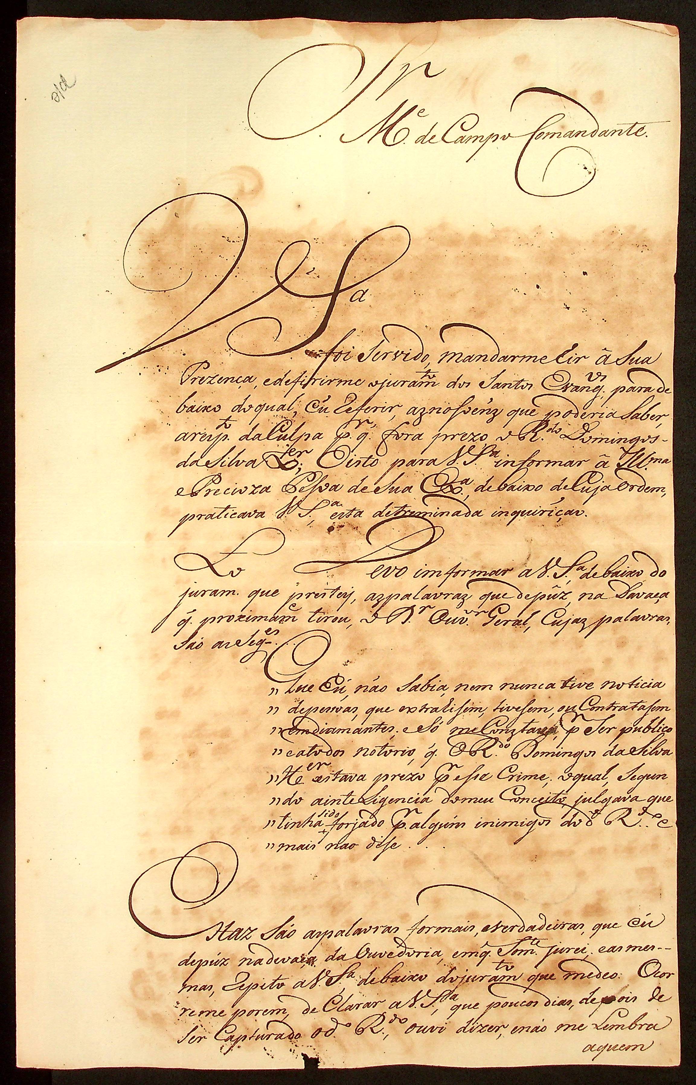 CARTA de Joaquim Xavier da Costa Valle ao Mestre de Campo e Comandante [Antônio José Pinto de Figueiredo].