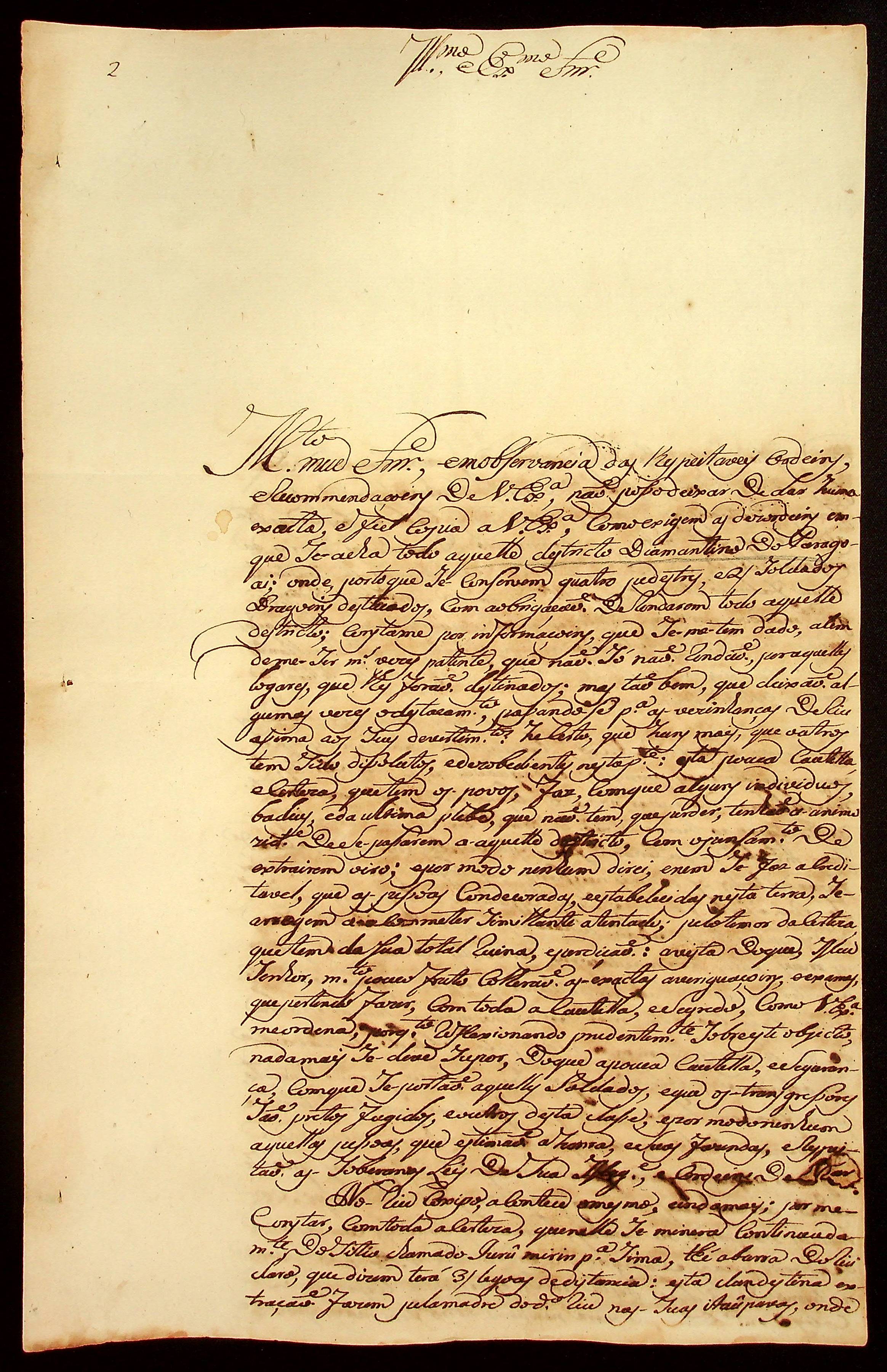 CARTA do [Mestre de Campo José Paes Falcão das Neves] ao [Governador e Capitão-General da Capitania de Mato Grosso João de Albuquerque de Mello Pereira e Cáceres].