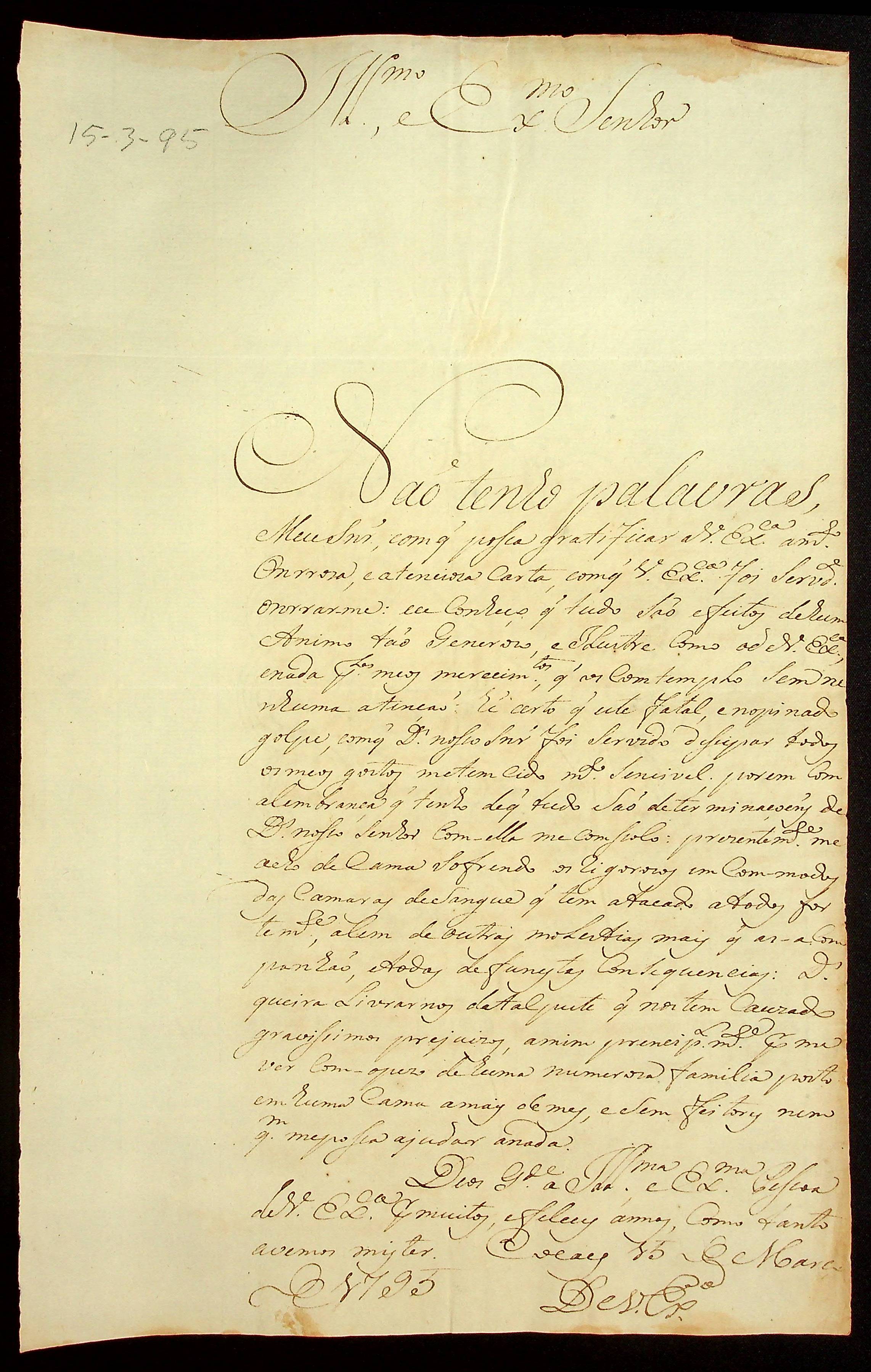 CARTA de José Paes Falcão das Neves ao [Governador e Capitão-General da Capitania de Mato Grosso] João de Albuquerque de Mello Pereira e Cáceres.