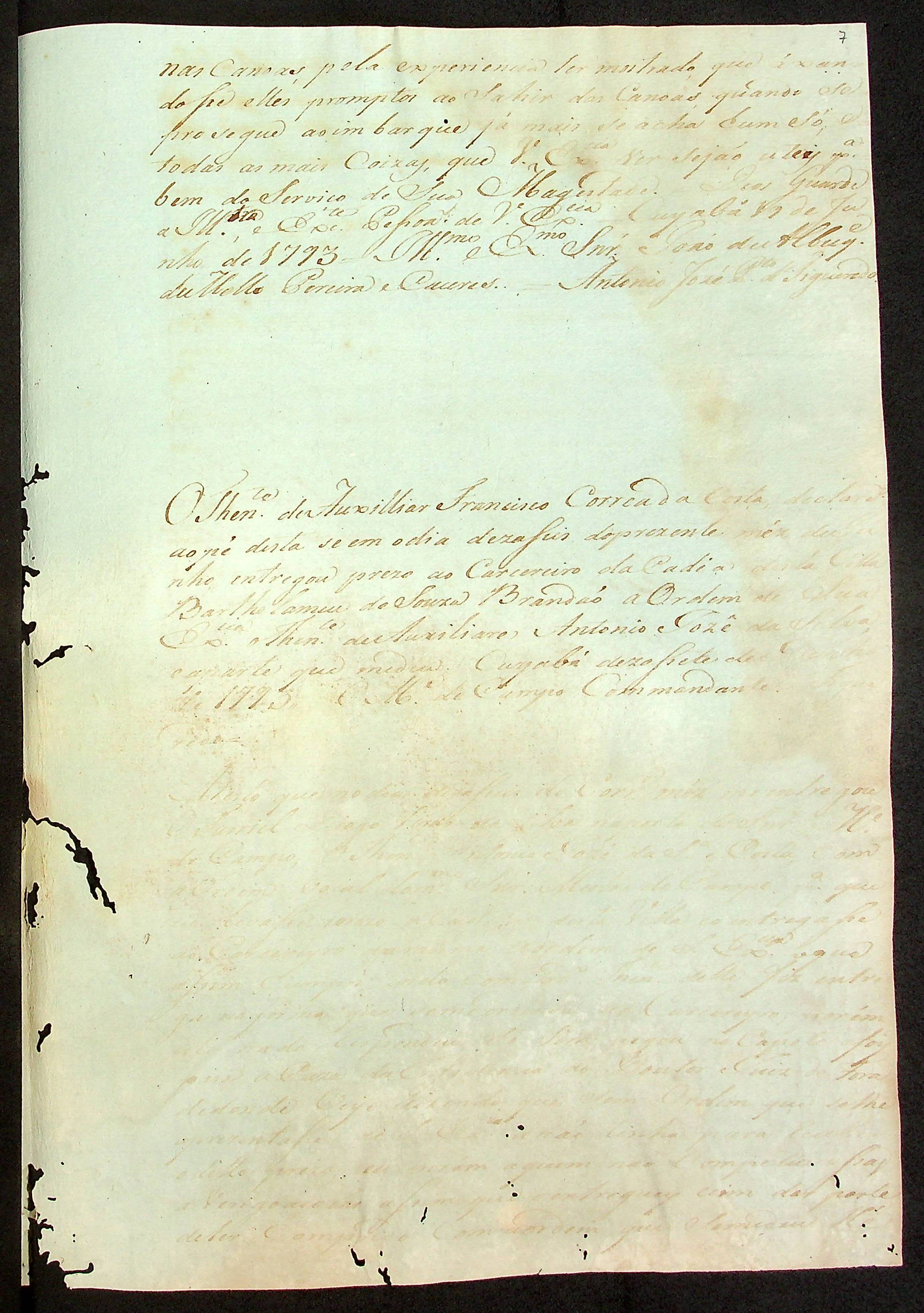 CARTA (cópia/conjunta) do [Mestre de Campo] Antônio José Pinto de Figueiredo ao [Governador e Capitão-General da Capitania de Mato Grosso] João de Albuquerque de Mello Pereira e Cáceres.