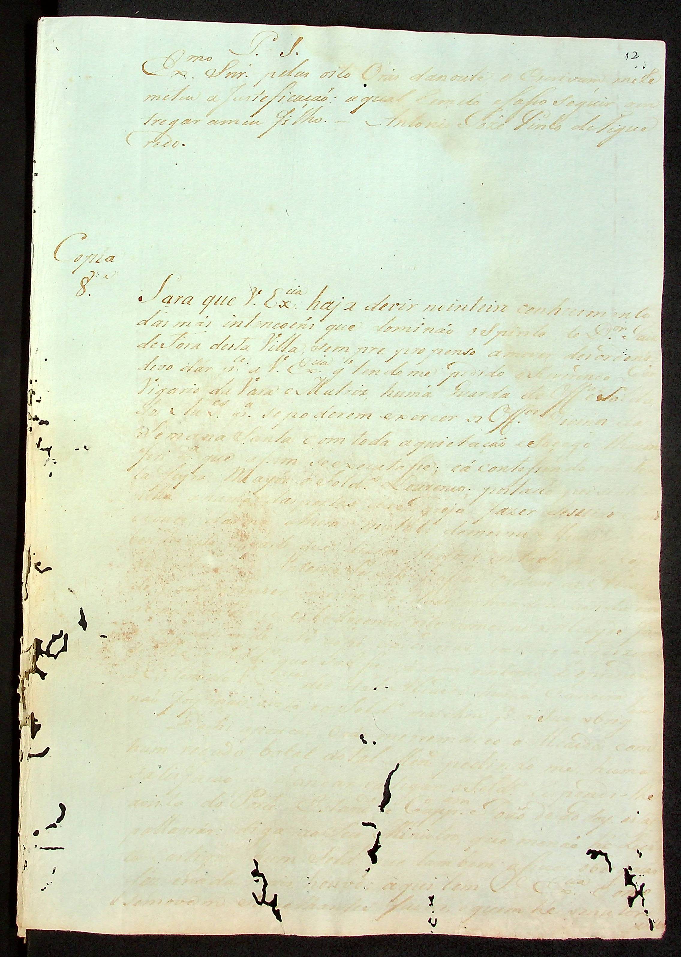 CARTA (cópia/conjunta) do [Mestre de Campo] Antônio José Pinto de Figueiredo ao [Governador e Capitão-General da Capitania de Mato Grosso] João de Albuquerque de Mello Pereira e Cáceres.