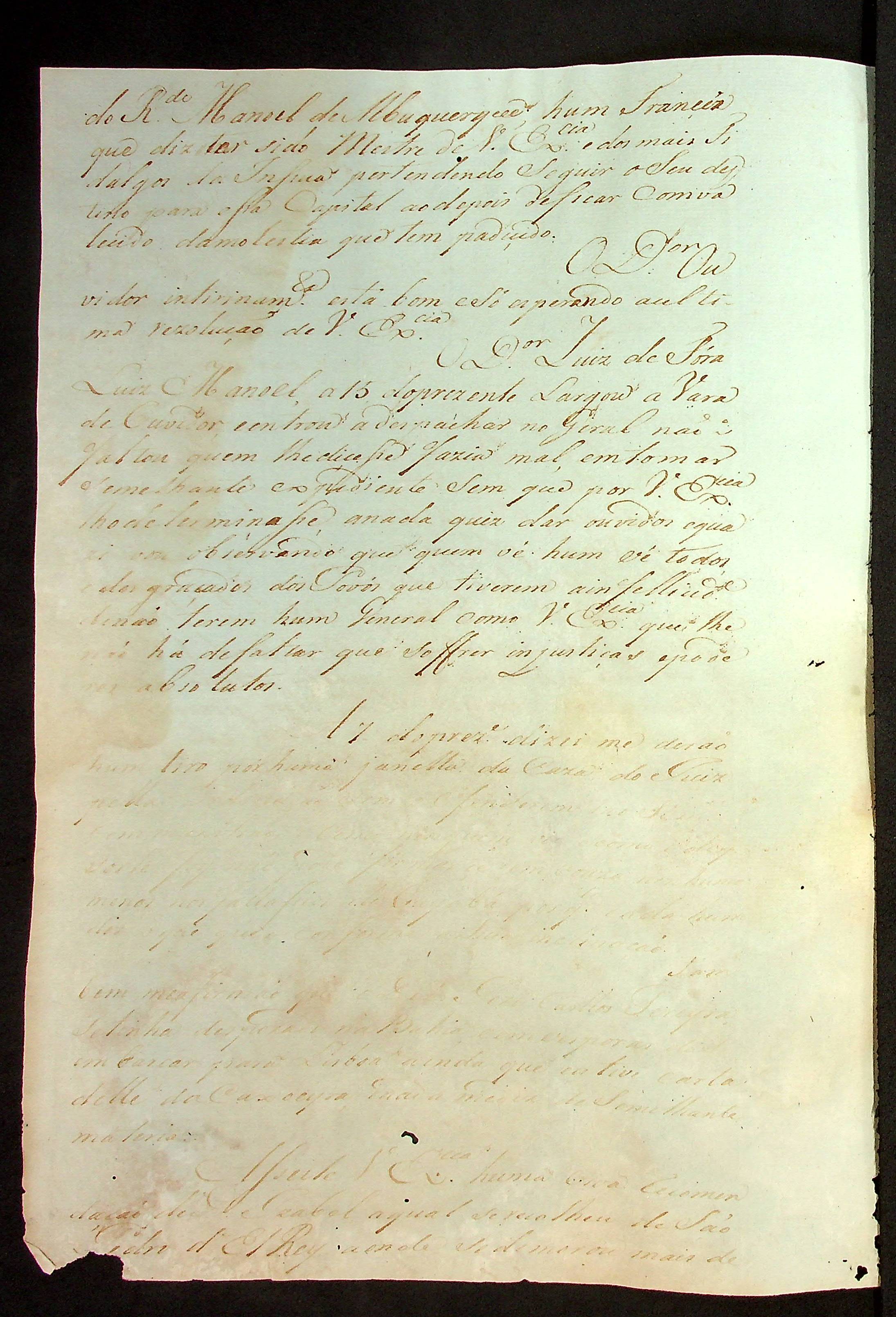 CARTA (cópia/conjunta) do [Mestre de Campo] Antônio José Pinto de Figueiredo ao [Governador e Capitão-General da Capitania de Mato Grosso] João de Albuquerque de Mello Pereira e Cáceres.