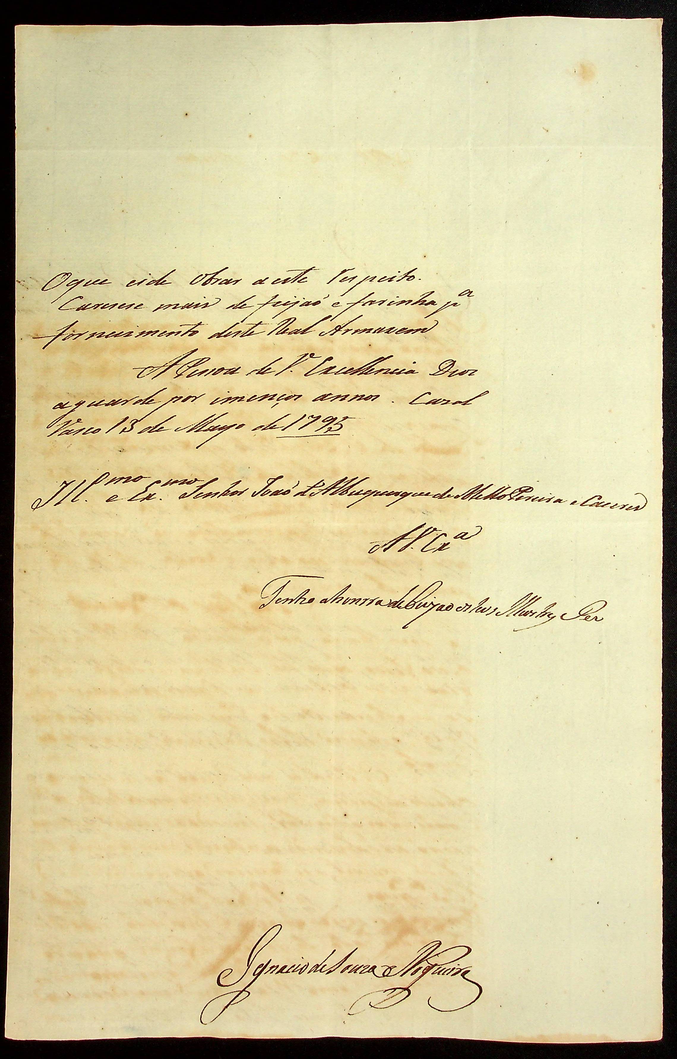 CARTA de Ignácio de Souza Nogueira ao [Governador e Capitão-General de Mato Grosso] João de Albuquerque de Mello Pereira e Cáceres.