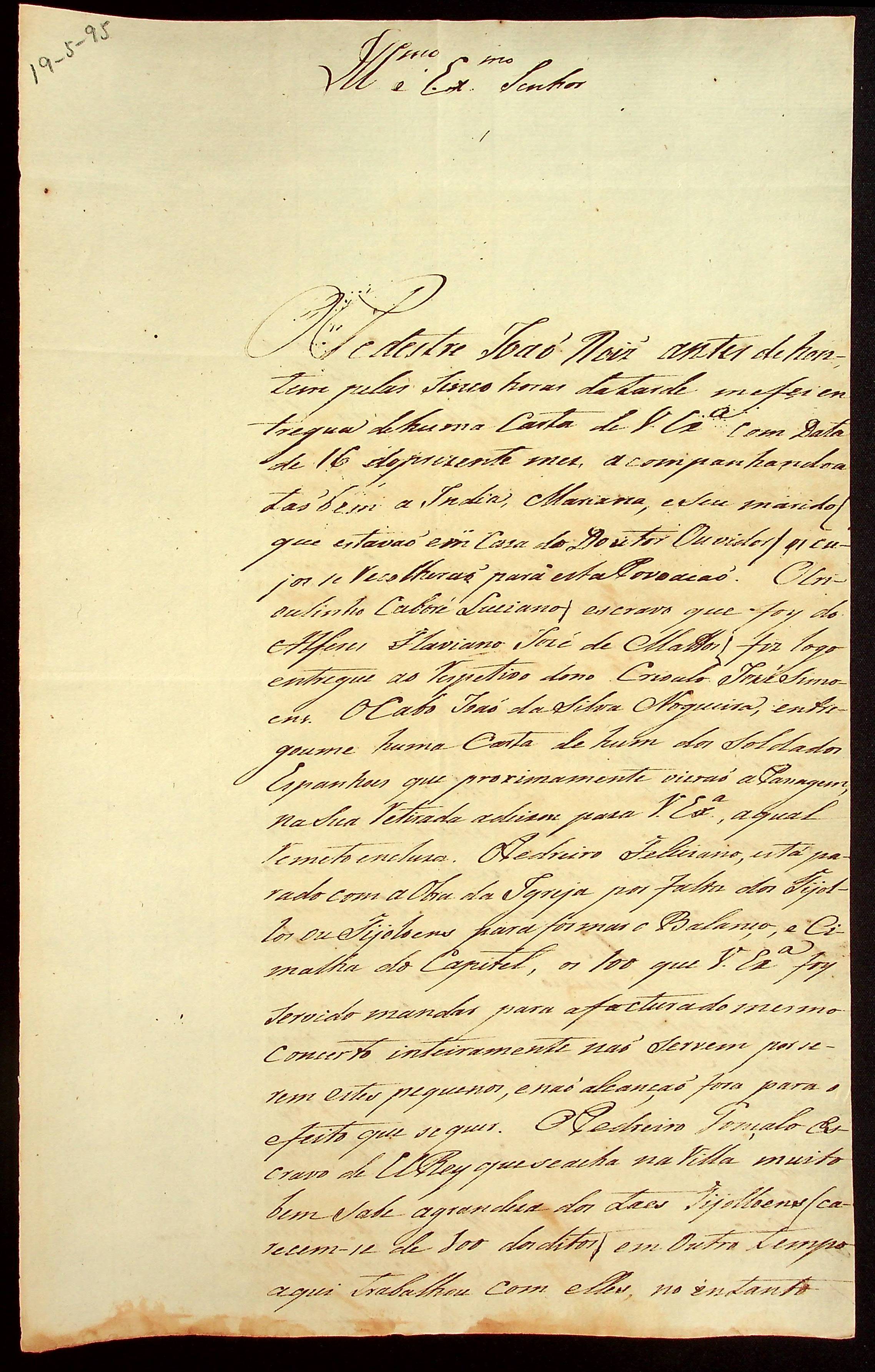 CARTA de Ignácio de Souza Nogueira ao [Governador e Capitão-General de Mato Grosso] João de Albuquerque de Mello Pereira e Cáceres.