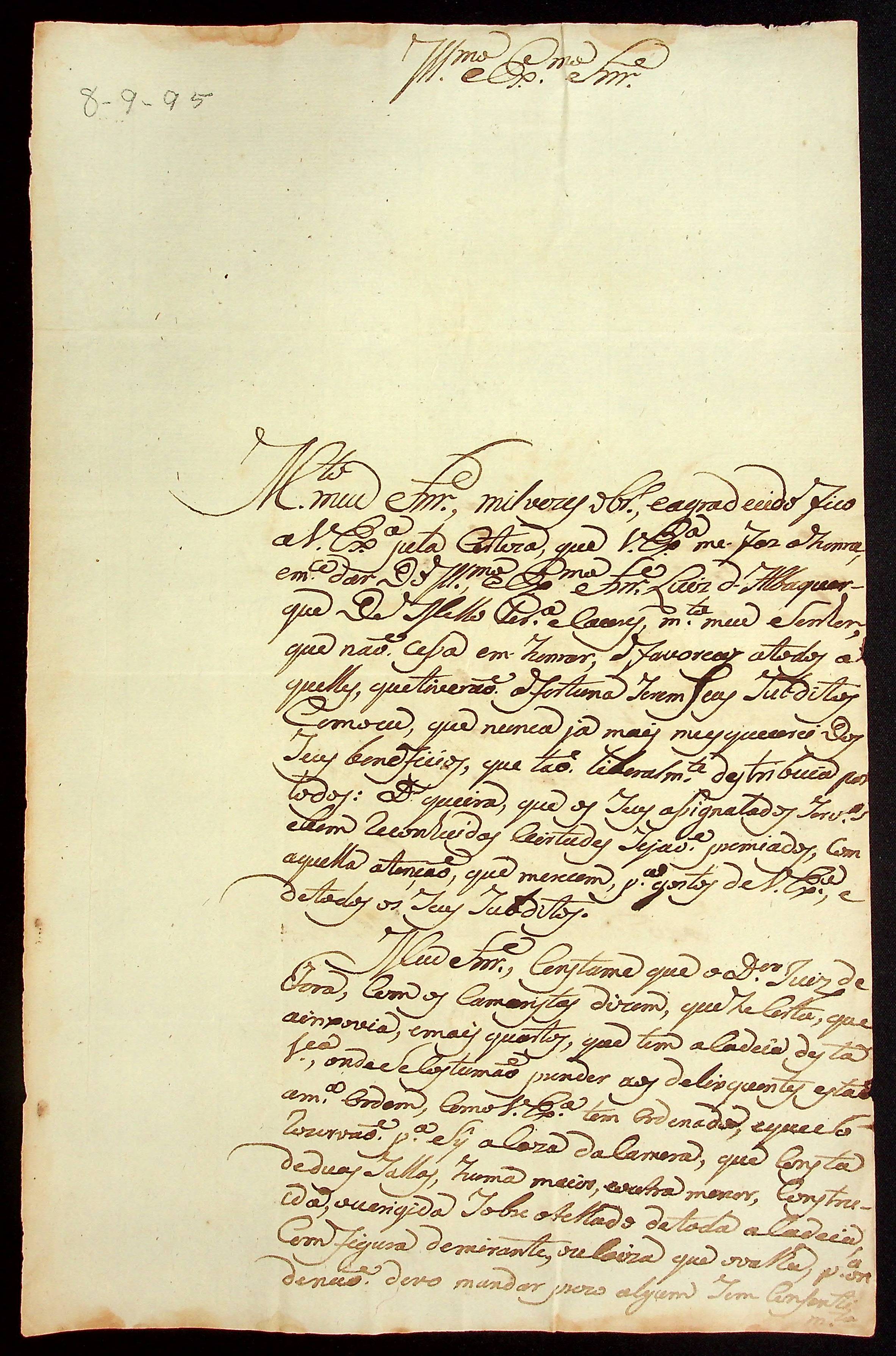 CARTA do [Mestre de Campo] José Paes Falcão das Neves ao [Governador e Capitão-General da Capitania de Mato Grosso] João de Albuquerque de Mello Pereira e Cáceres.